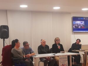 La seconda parte dell’incontro è stata impreziosita dagli interventi dei rappresentanti delle associazioni del territorio che si prendono cura delle persone con disabilità e delle loro famiglie: il presidente Marco Rosati, per l’associazione “A Casa di Marco”; il presidente Paolo Caioni per l’“Unitalsi” di Ascoli Piceno (presente anche Rosita Di Salvatore per l’Unitalsi di San Benedetto del Tronto); la presidente Loredana Fanini, per l’associazione “Agave” di Sant’Egidio alla Vibrata; Cristiana Carniel per l’associazione “Michelepertutti” di Stella di Monsampolo; Luigi Canala, per “Confad.eu” APS di Ascoli Piceno; Antonia Paolini, per l’“AVI Marche”– sportello di Ascoli Piceno nell’Ambito 23; Chiara Izzi e Danila Corsi, rispettivamente coordinatrice e presidente di “ANFFAS” di Ascoli Piceno e di Martinsicuro; Enrico Scattolini, per “Oltre” di Ascoli Piceno; Claudia Zappasodi, per la “Casa Accogliente” sua e di suo marito Gioacchino Bruni ad Offida.