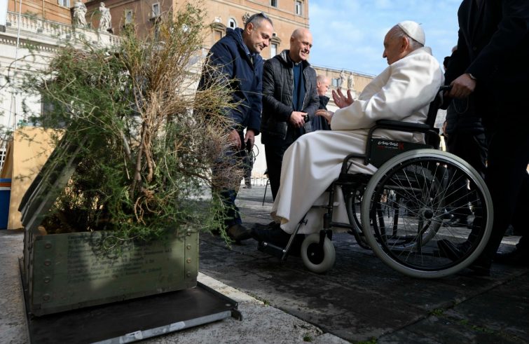 Un “dono” particolare a papa Francesco dalla martoriata Ucraina. Questa mattina a margine dell’udienza generale, il gruppo “Frontiere di pace” di Como ha potuto portare a Papa Francesco due casse di munizioni utilizzate dai russi e trasformate in fioriere. Il Papa ne ha benedetta una. L’altra gli è stata consegnata in dono. In un incontro più ristretto, il coordinatore del gruppo Giambattista Mosa e il parroco della parrocchia Santa Maria Assunta di Maccio in Villa Guardia (Como), don Gianluigi Zuffellato hanno avuto modo di spiegare al Papa il senso di questa iniziativa. Nel corso dell’invasione russa su larga scala in Ucraina, migliaia di casse con all’interno armi e munizioni sono state trasportate sul territorio ucraino e abbandonate in migliaia di pezzi. Nel corso delle 31 missioni organizzate e portate a termine dal gruppo di volontari “Frontiere di pace”, una decina di queste casse sono state recuperate, portate in Italia e trasformate in fioriere. Sono quindi diventate “simbolo di pace e l’emblema di un nuovo progetto che ci permetterà poi di raccogliere dei fondi”. Al papa è stato consegnato anche il libro “Voci e volti della resistenza Ucraina” scritto da Giambattista Mosa e Nicola Gini. “Dove per resistenza – spiega Gini – non si intende necessariamente resistenza armata, ma quella resistenza che quotidianamente il popolo porta avanti in queste zone di guerra nonostante sia continuamente esposto al pericolo dei bombardamenti. Abbiamo dato un volto a questa guerra, con nomi, luoghi, storie delle persone che abbiamo incontrato e che ci hanno chiesto di restituire la loro voce nelle nostre comunità”. “Frontiere di Pace” svolge missioni umanitarie in zone di guerra. La loro “base” è nella parrocchia Santa Maria Assunta di Maccio in Villa Guardia (Como). Abbiamo chiesto al parroco don Gianluigi Zuffellato di raccontarci come nasce questa iniziativa.