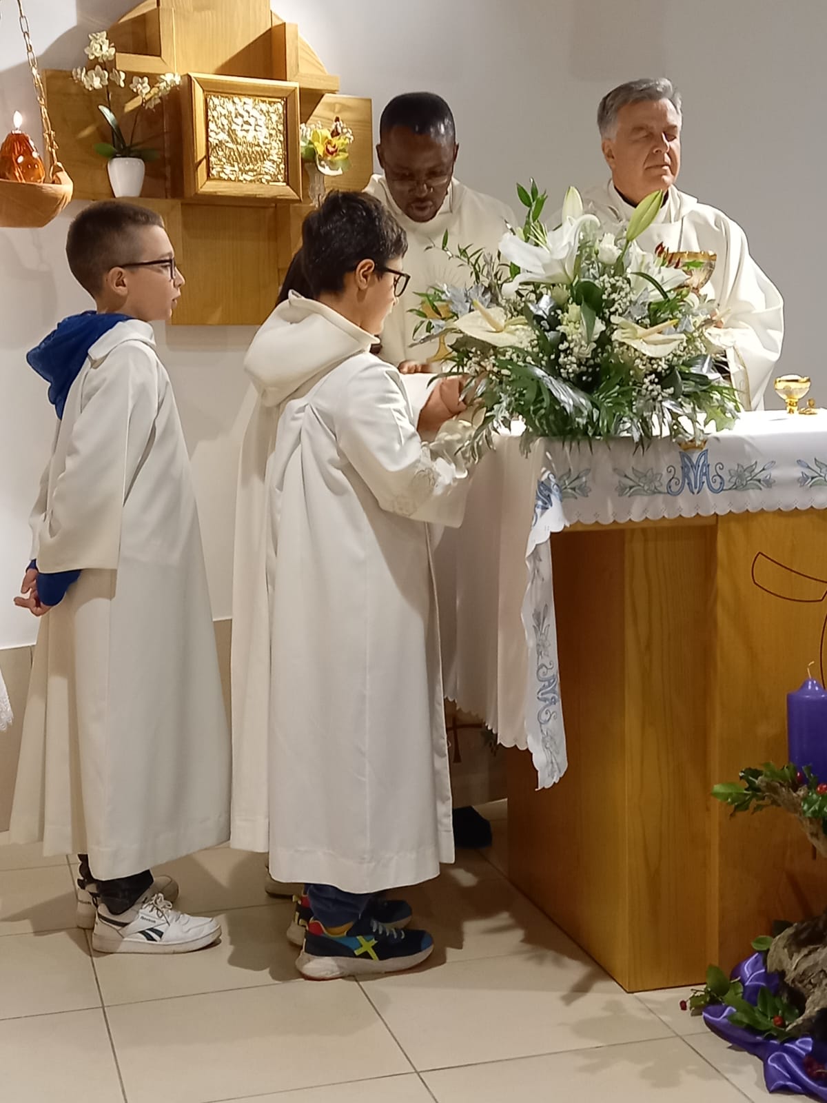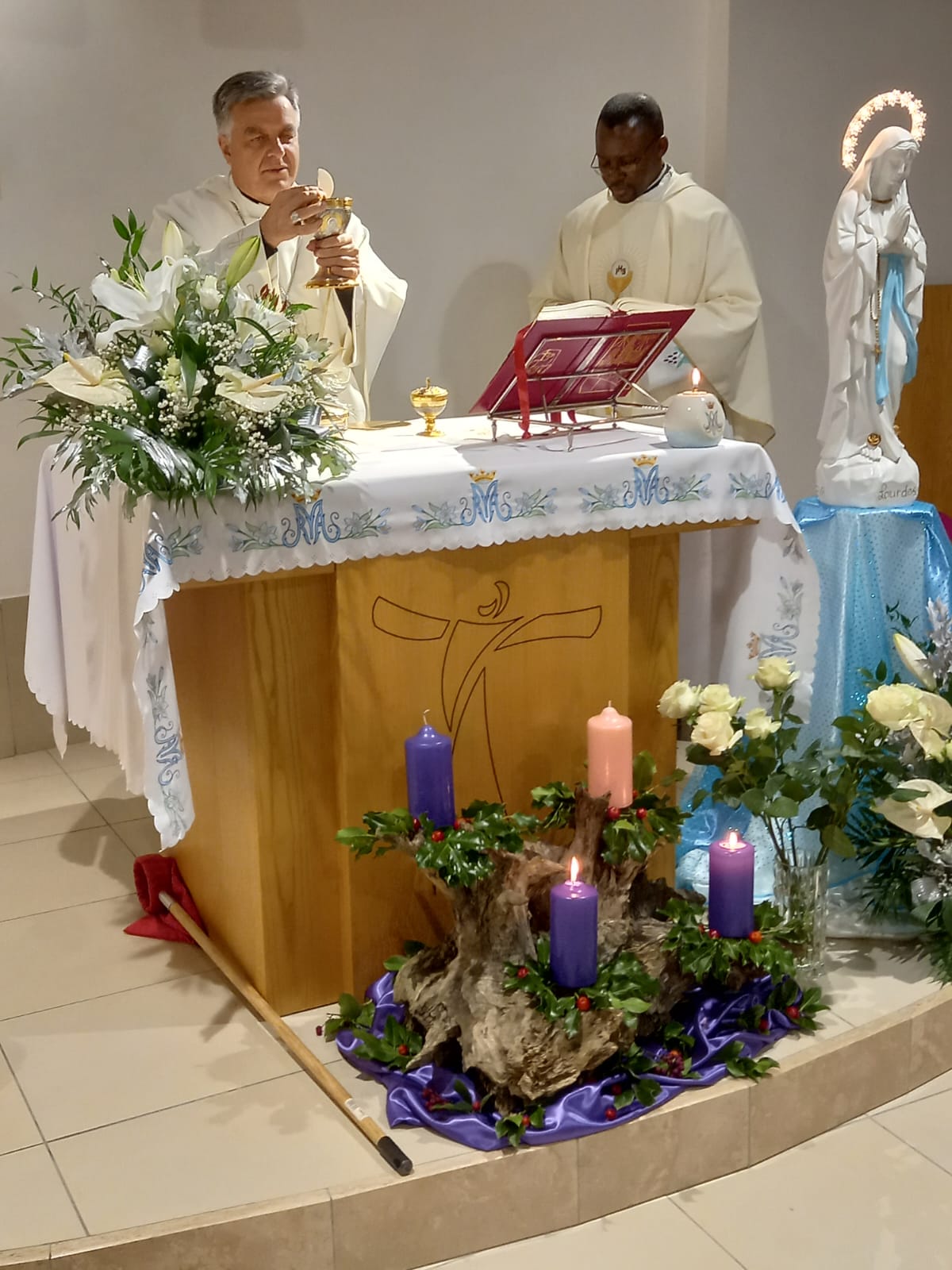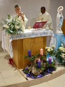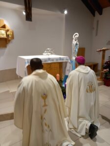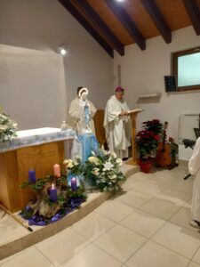 È con queste parole che mons. Gianpiero Palmieri, vescovo delle due Diocesi del Piceno, ha iniziato la sua omelia durante la Celebrazione Eucaristica da lui presieduta Sabato 7 Dicembre 2024, alle ore 17:00, presso la cappella delle Suore Figlie della Santissima Vergine Immacolata di Lourdes nella frazione Borgo di Arquata del Tronto. La Messa è stata concelebrata dal parroco don Emanuel Chemo, da Madre Maria di Gesù, da Suor Gennarina e Suor Ana Luisa e dai fedeli riuniti in occasione della festività dell’Immacolata Concezione, dogma proclamato proprio 170 anni fa, l’8 Dicembre del 1854, da papa Pio IX con la costituzione apostolica “Ineffabilis Dues“.