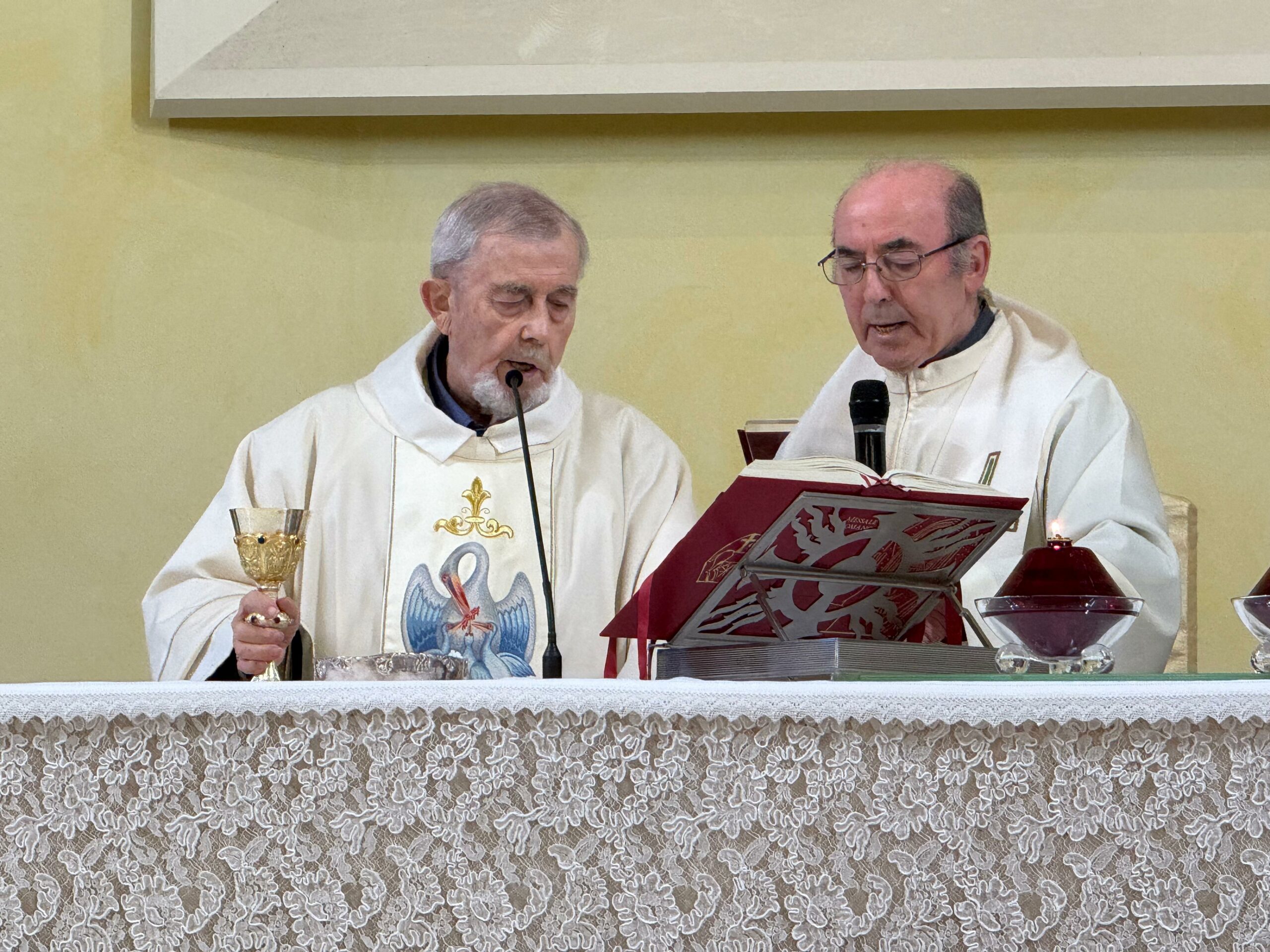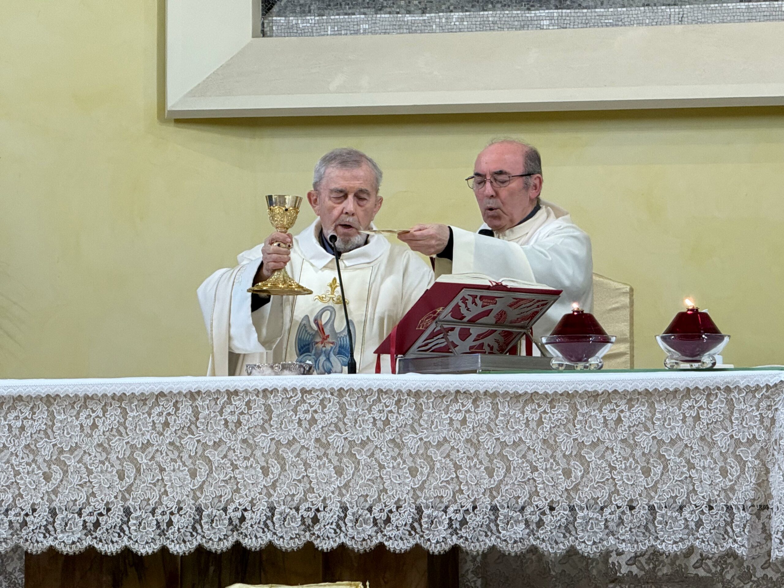 Per esprimere la nostra gratitudine e festeggiare queste ricorrenze, sabato 7 dicembre ci siamo riuniti presso il Refettorio dei Padri Sacramentini. Padre Leopoldo ci aveva invitato a partecipare a un momento di ringraziamento al Signore per i doni della vita, del sacerdozio e della consacrazione religiosa, come lui stesso aveva scritto: “Per il dono della vita, del Sacerdozio e della Consacrazione Religiosa nell’Istituto dei Padri Sacramentini e la richiesta di perdono per i limiti di risposta alla Sua Grazia”.