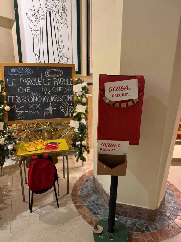 SAN BENEDETTO DEL TRONTO – I ragazzi del gruppo della cresima della Parrocchia Cristo Re hanno scritto sulla lavagna, posta affianco all’albero di Natale: “Le parole che feriscono e le parole che guariscono”.
