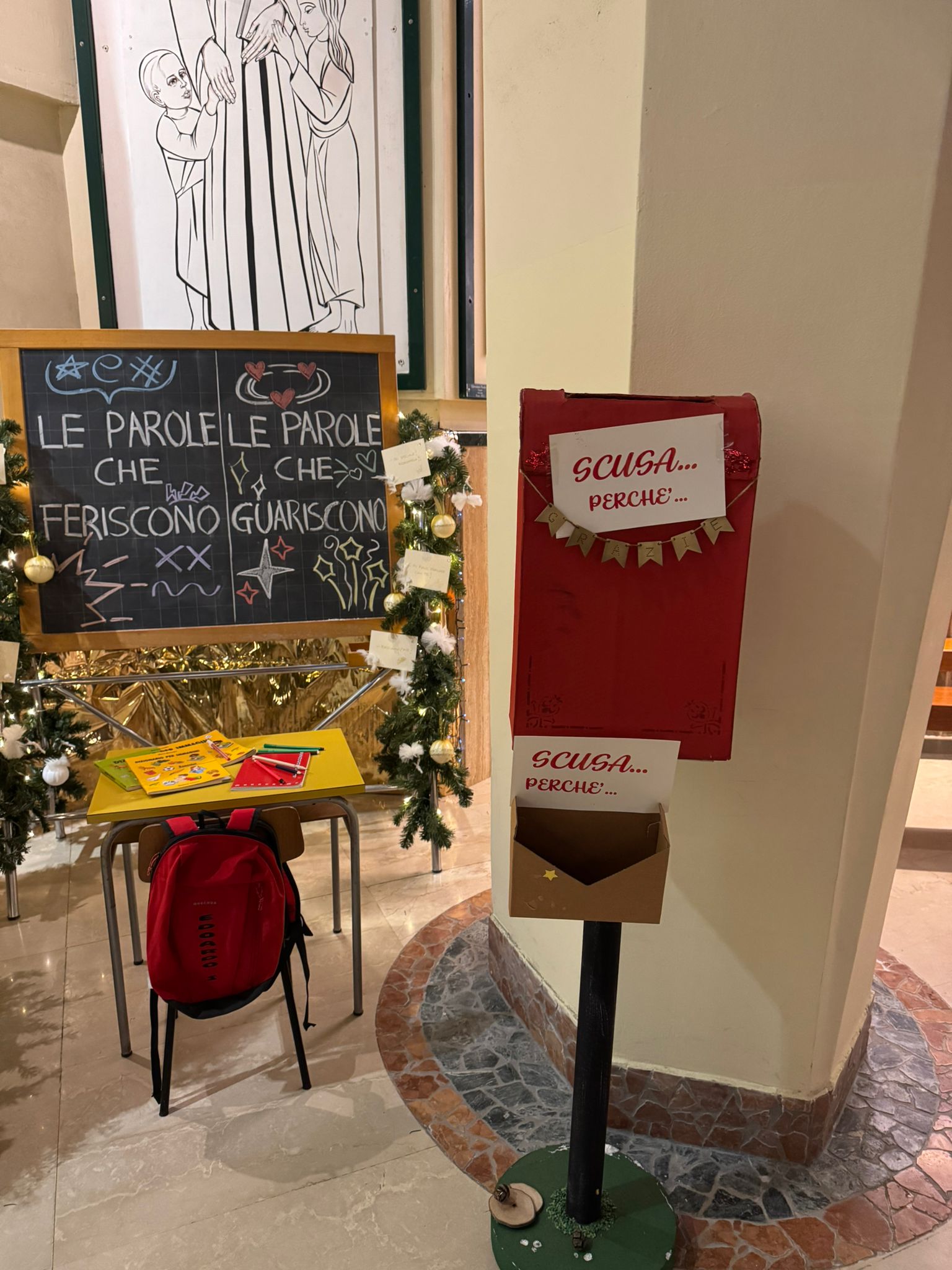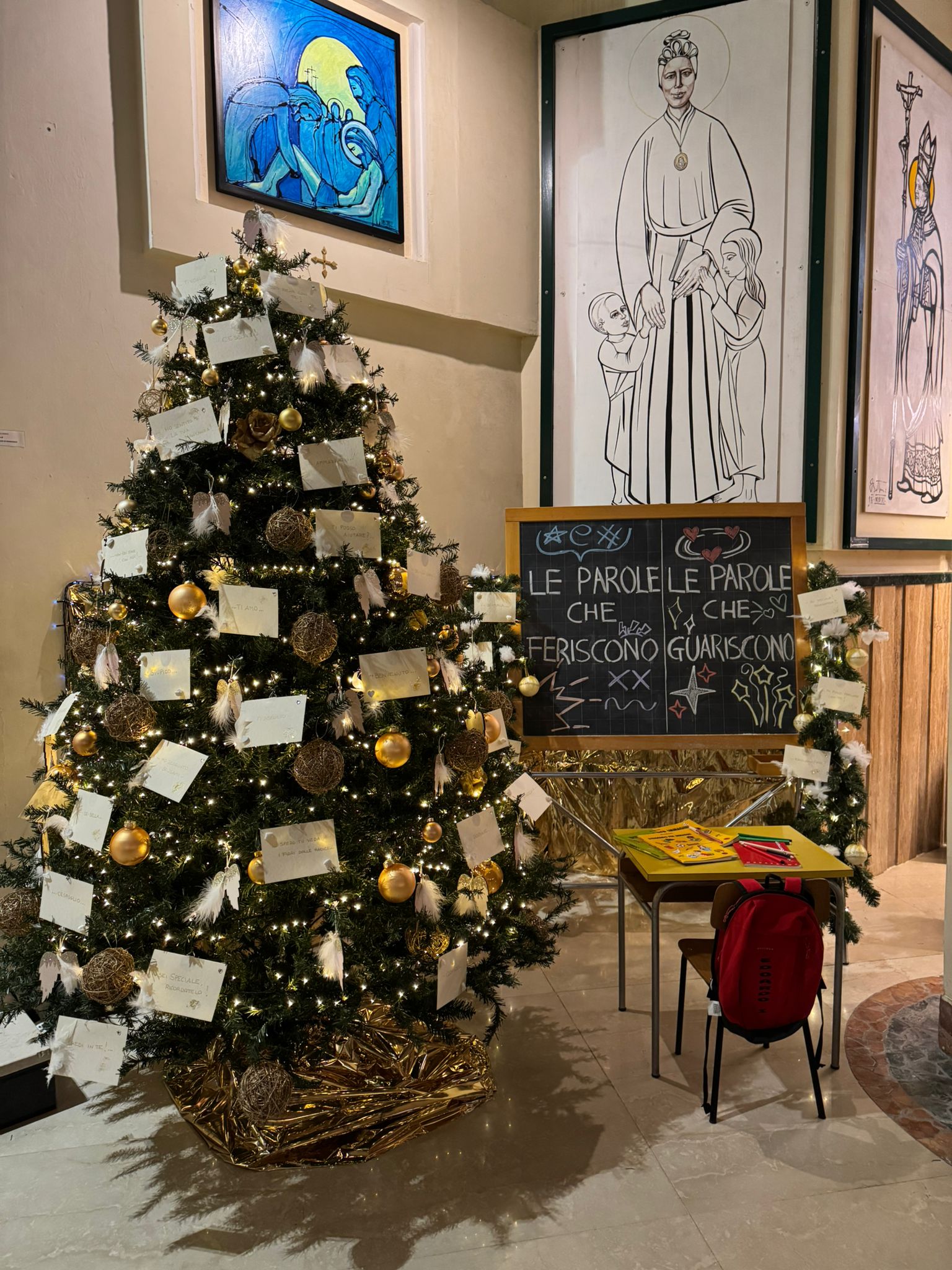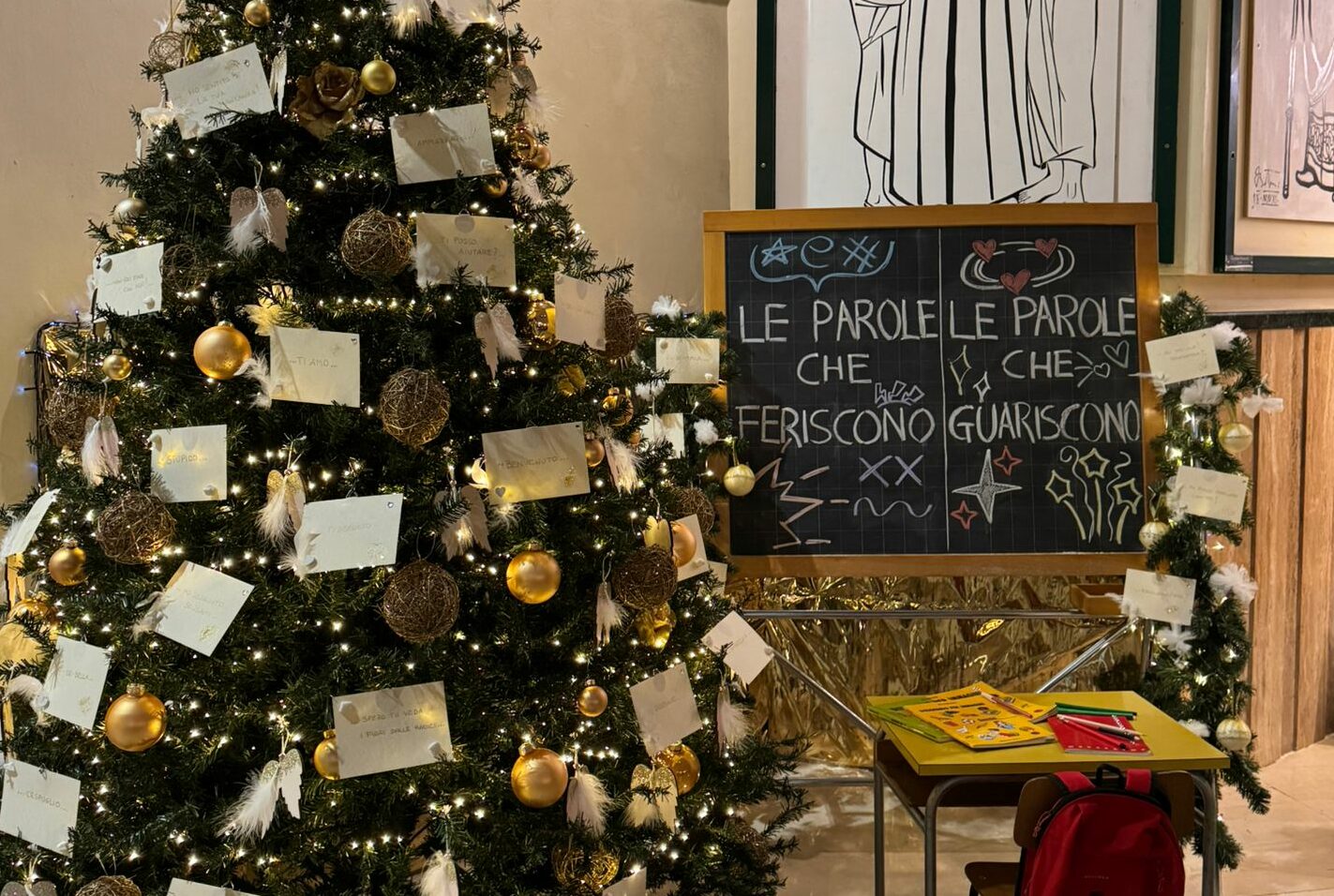SAN BENEDETTO DEL TRONTO – I ragazzi del gruppo della cresima della Parrocchia Cristo Re hanno scritto sulla lavagna, posta affianco all’albero di Natale: “Le parole che feriscono e le parole che guariscono”.
