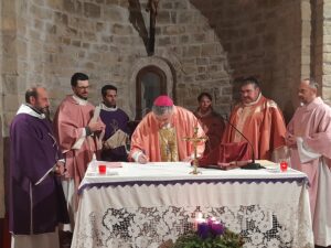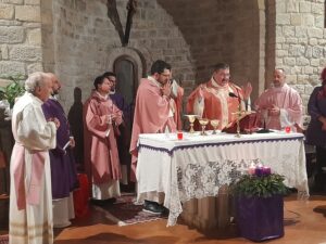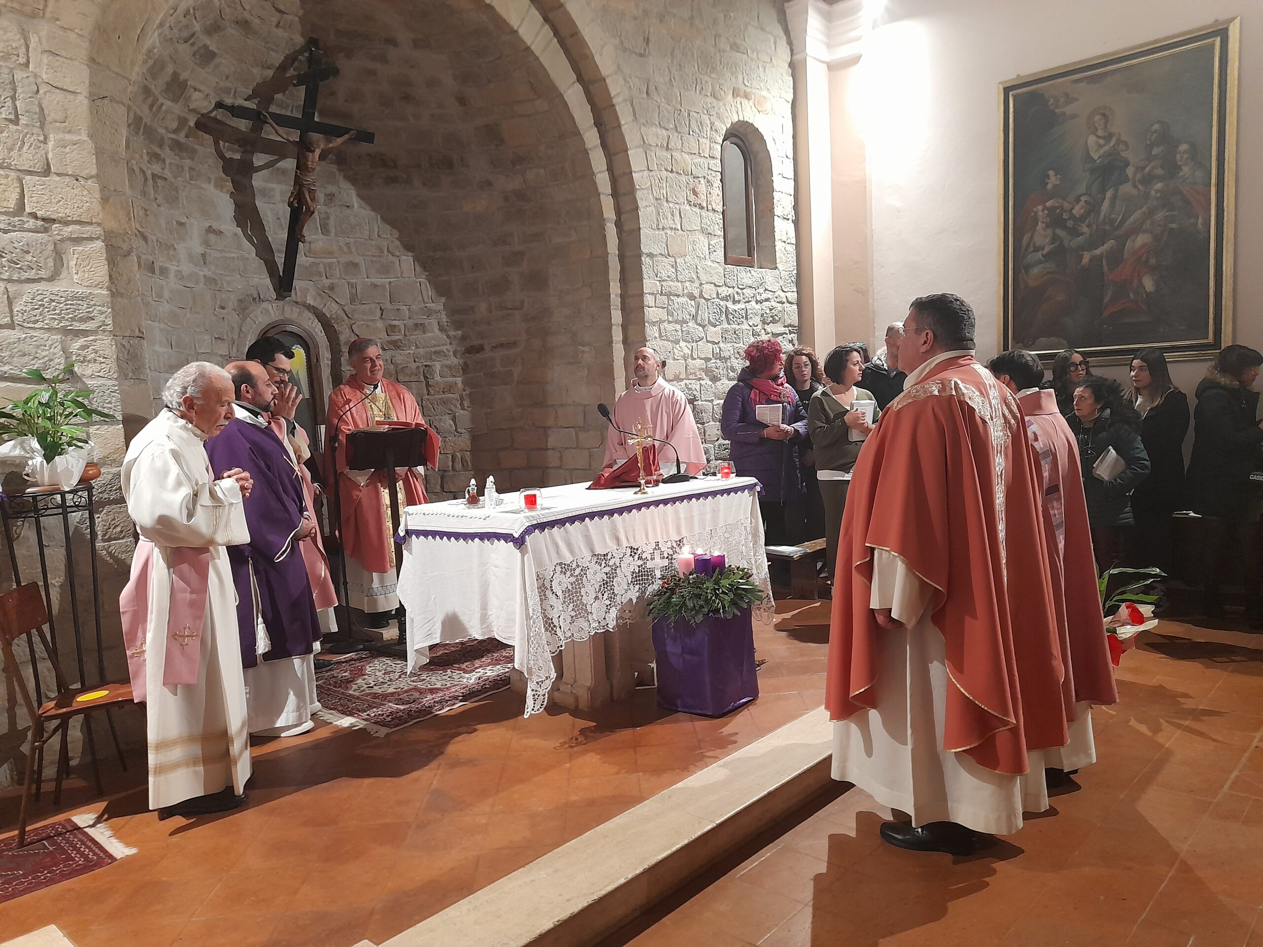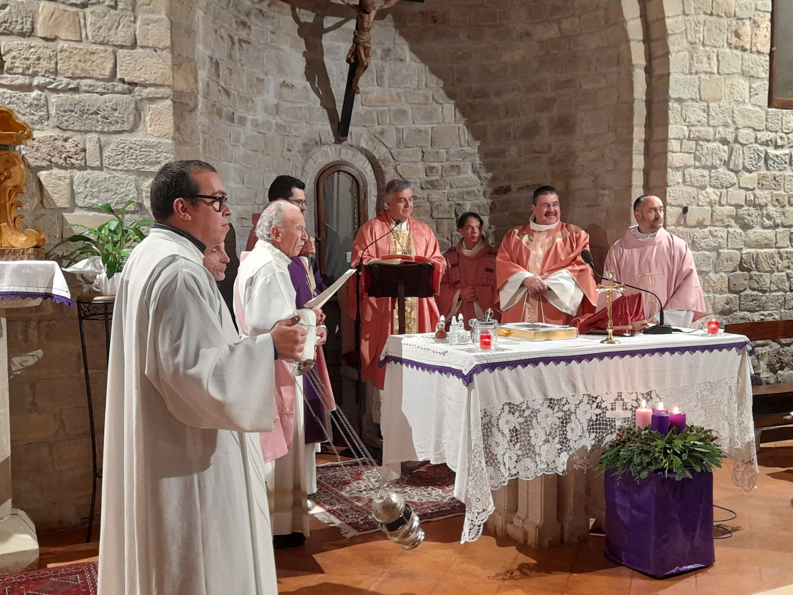 Queste le parole del vescovo Palmieri durante l’omelia: «Carissimi, oggi viviamo un momento particolarmente solenne ed importante per la vita della vostra parrocchia e per quelle di Montegallo, perché ricevete un nuovo parroco. Quando avviene questo, c’è sempre una fatica, una tristezza per il parroco che lascia, ma, nello stesso tempo il momento è anche l’occasione di una grande crescita per la parrocchia. Per questa ragione è un po’ difficile fare un plebiscito. Se uno chiedesse: “Che dite: cambiamo il parroco?”, tutti direbbero di no! Per questo la decisione è affidata al discernimento del vescovo. Vedete, però, quello che noi siamo chiamati a vivere in ogni stagione è forse l’ultimo versetto del Vangelo di oggi. Giovanni Battista evangelizzava il popolo. Noi siamo il popolo di Dio, il popolo di coloro che hanno accolto il Vangelo di Gesù e che in ogni stagione hanno bisogno di evangelizzare se stessi, ovvero di riaccogliere nuovamente dalle labbra di Gesù il Vangelo e allo stesso tempi di lasciarsi convertire il cuore dal Signore, come se fosse la prima volta. In questo il Vangelo, con cui ci evangelizziamo, è sulle labbra del sacerdote, sulle labbra del diacono, ma anche sulle labbra di ciascuno di noi. Gli uni gli altri ci evangelizziamo. Quando ci riuniamo insieme per condividere la Parola di Dio, quando i catechisti si riuniscono con i bambini, quando gli anziani ricevono a casa la Parola e l’Eucaristia. E noi abbiamo bisogno di questo, di evangelizzarci continuamente, affinché il nostro modo di essere Chiesa sia quello che il Signore ci ispira.