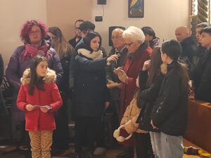 Al termine della Celebrazione Eucaristica, don Rodolfo e il diacono Luca si sono recati all’ingresso della chiesa per salutare, ad uno ad uno, tutti i fedeli presenti.