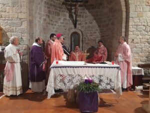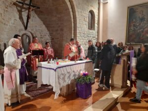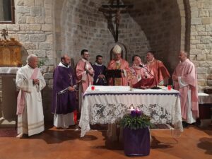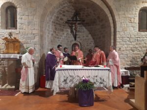 All’inizio della Celebrazione Eucaristica, è stata letta la bolla di nomina con cui il vescovo Gianpiero ha costituito una nuova zona pastorale, ovvero una circoscrizione ecclesiastica che comprende più parrocchie vicine fra loro e omogenee dal punto di vista sociale e pastorale. In questo caso la zona pastorale è territorialmente molto vasta ed è composta, oltre che da quella di Roccafluvione, da altre tre parrocchie ricadenti sul territorio di Montegallo: San Bernardino a Balzo, San Savino ad Uscerno e Santa Maria in Lapide. Nel decreto vescovile mons. Palmieri affida la nuova zona pastorale a don Rodolfo, il quale sarà aiutato nel suo servizio pastorale dal diacono cooperatore Luca.