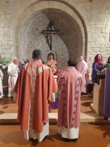 Come previsto dal rito d’ingresso, su don De Santis e sul diacono Antonini è stato invocato l’aiuto dello Spirito Santo, affinché il parroco ed i parrocchiani formino una sola famiglia, riunita nella fede, nella speranza e nella carità.