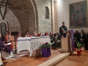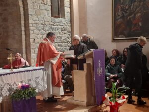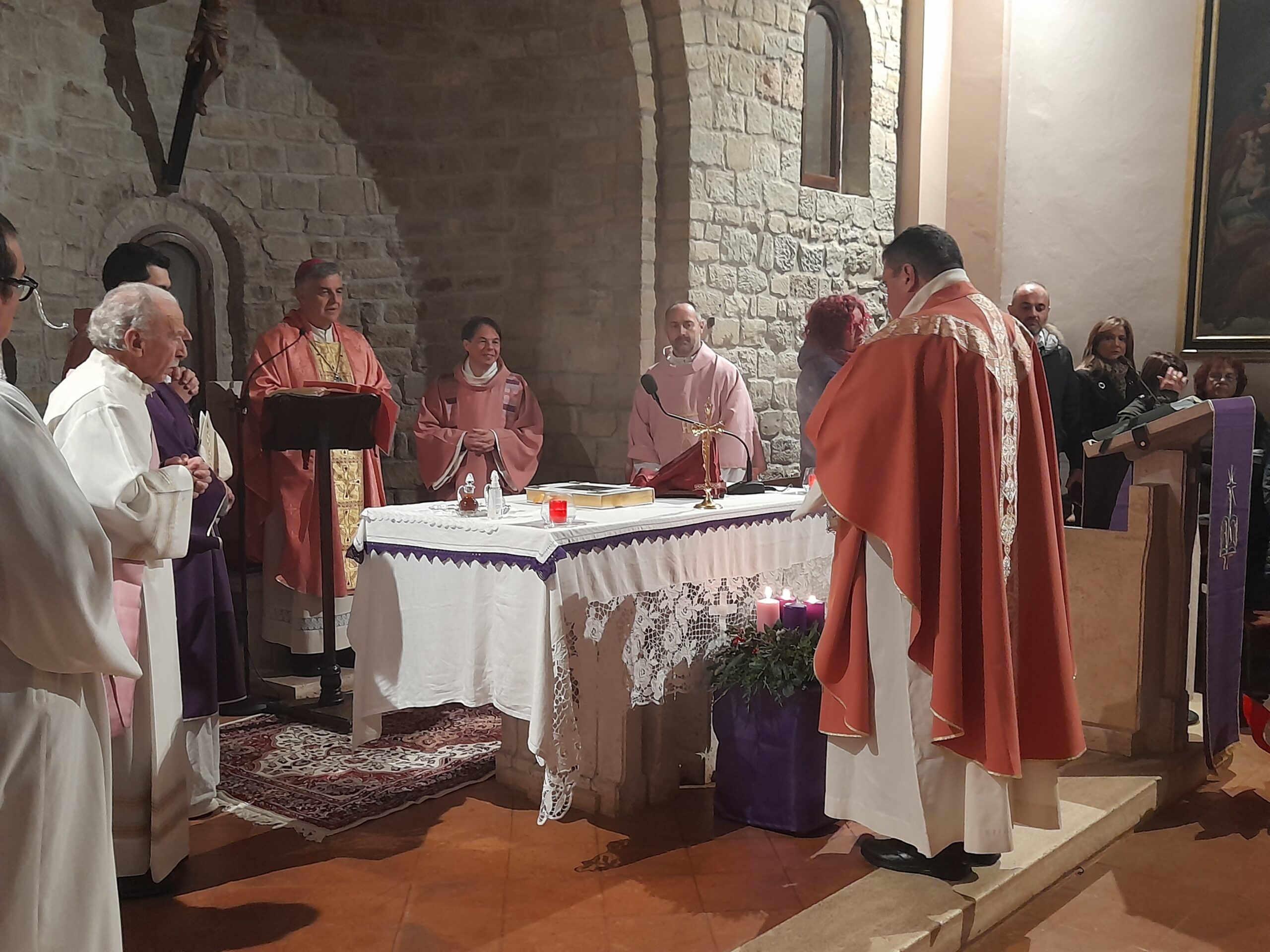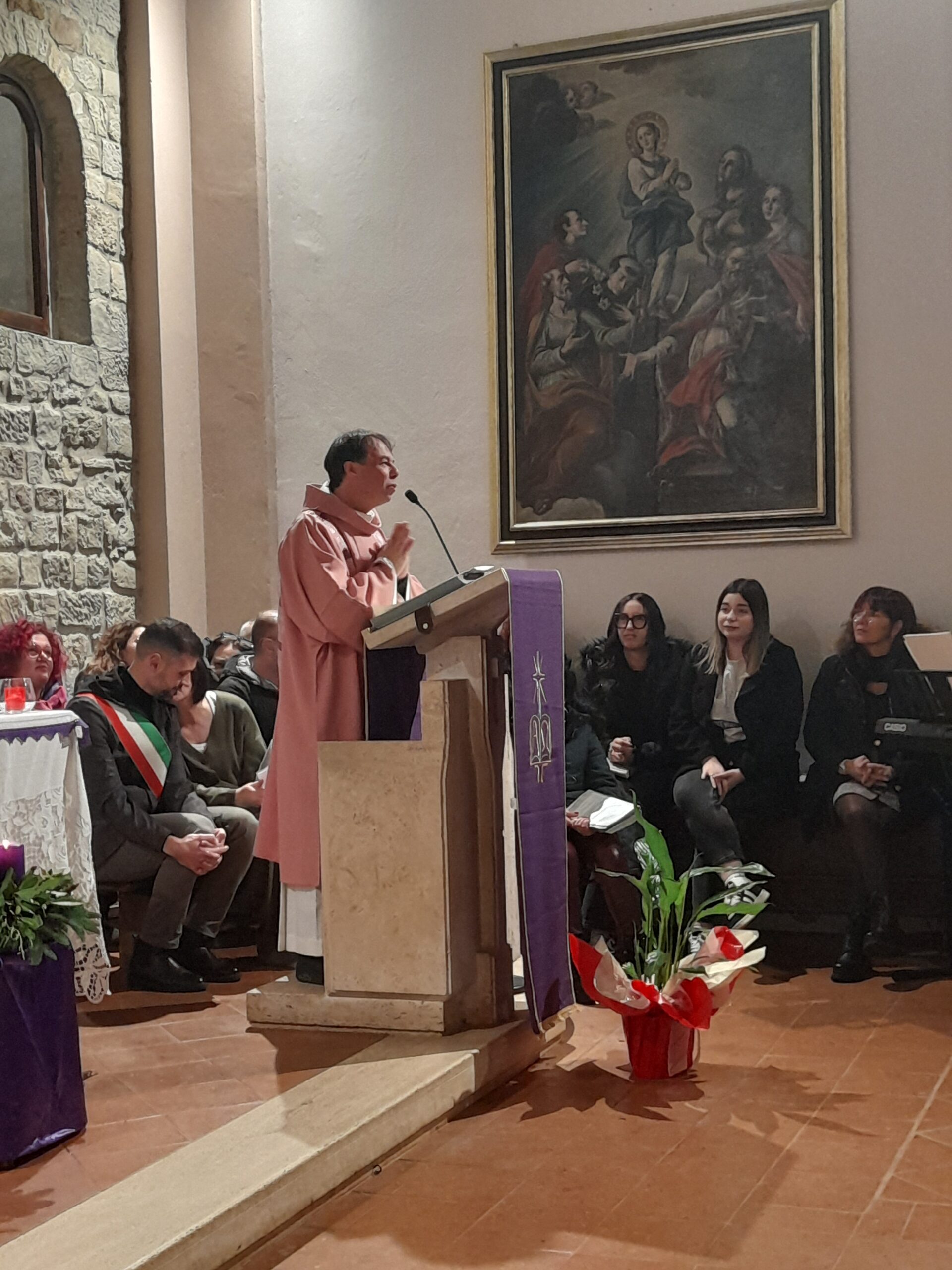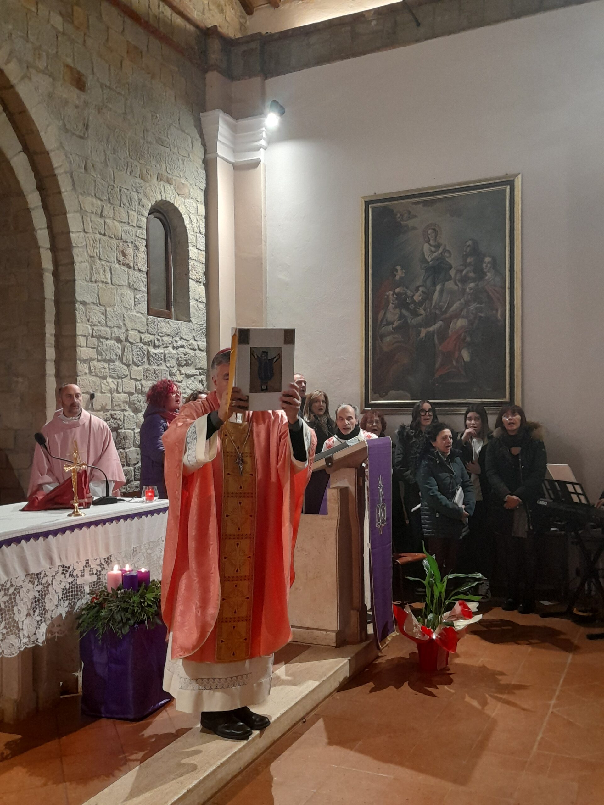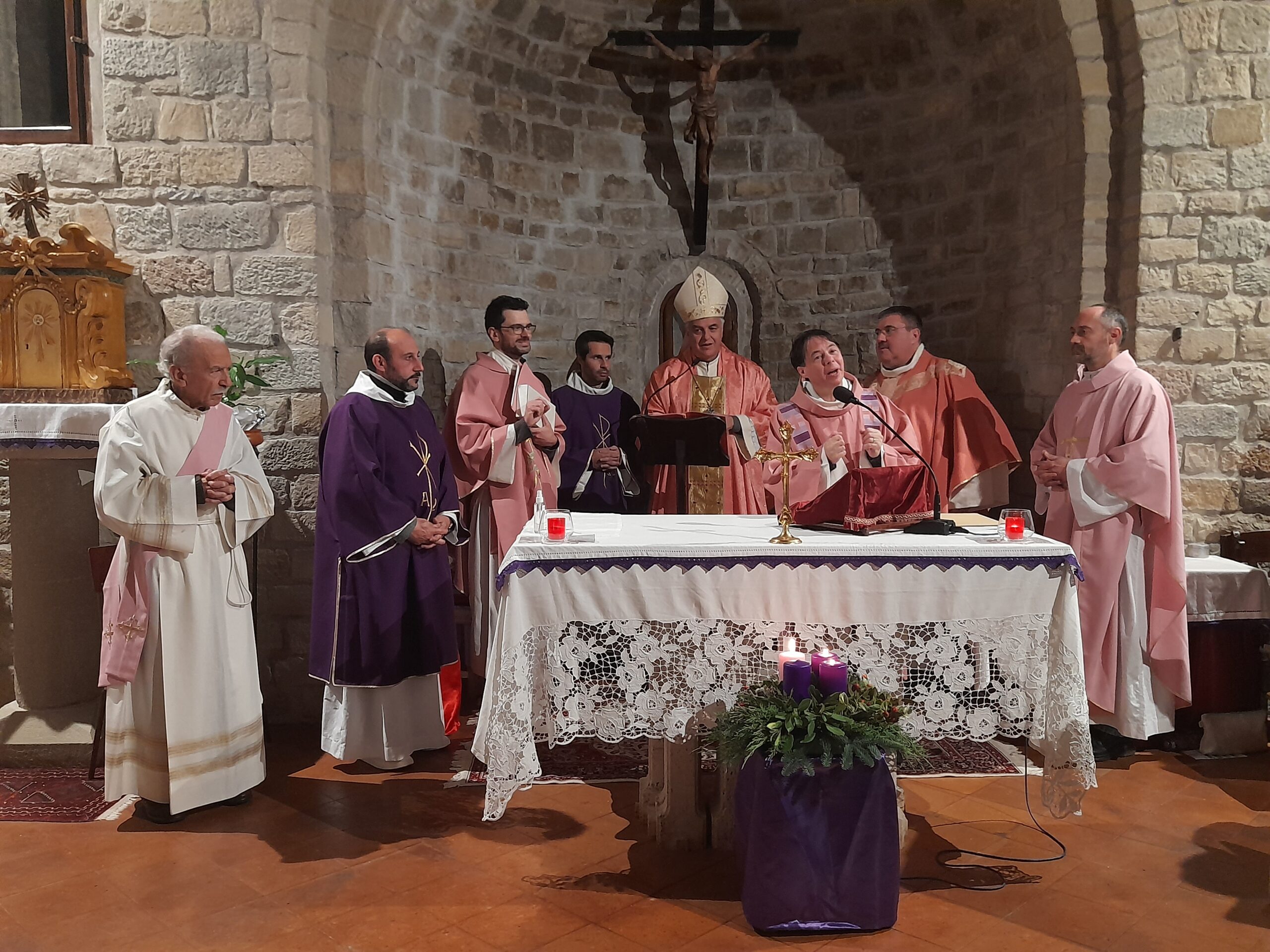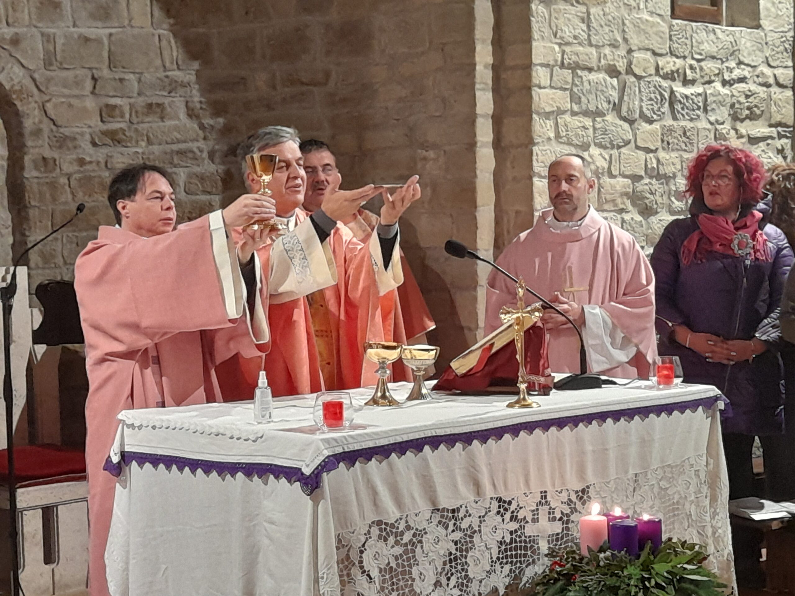 «Dirò solo tre cose. Prima di tutto vorrei che portaste il mio saluto agli assenti, dicendo loro che presto io e il diacono Luca andremo a trovarli. Poi mi piacerebbe che passassimo subito al “noi”, sia tra me e Luca, sia tra me e voi: sono sicuro che così faremo grandi cose. Infine voglio sottolineare due passaggi del Vangelo di oggi: “Il Signore è vicino”, che significa che c’è e ci accompagna; poi “Il Signore esulta di gioia” e non lo fa per grandi città, ma per Sion, oggi allora esulta di gioia per Roccafluvione e Montegallo!».