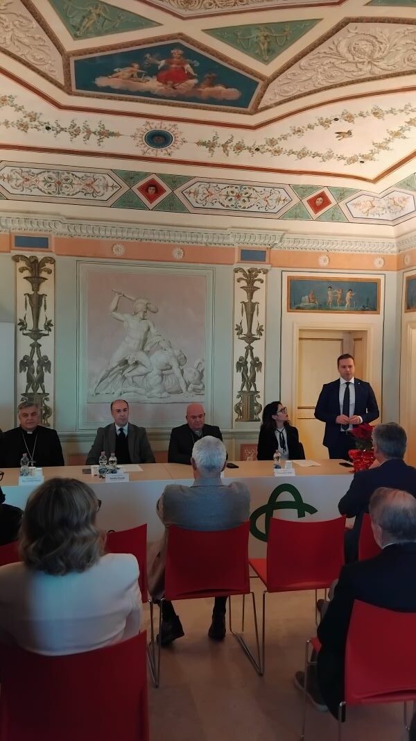 ACQUAVIVA PICENA Martedì 17 dicembre, alle ore 15:30, presso la sede della BCC Banca del Piceno in via Marziale ad Acquaviva Picena, si è tenuto un incontro significativo tra il Consiglio d’Amministrazione della banca e gli Arcivescovi Mons. Gianpiero Palmieri e Mons. Rocco Pennacchio. L’evento ha avuto l’obiettivo di rafforzare il dialogo e la collaborazione tra la Banca del Piceno e le istituzioni ecclesiali per affrontare insieme le sfide sociali del territorio.