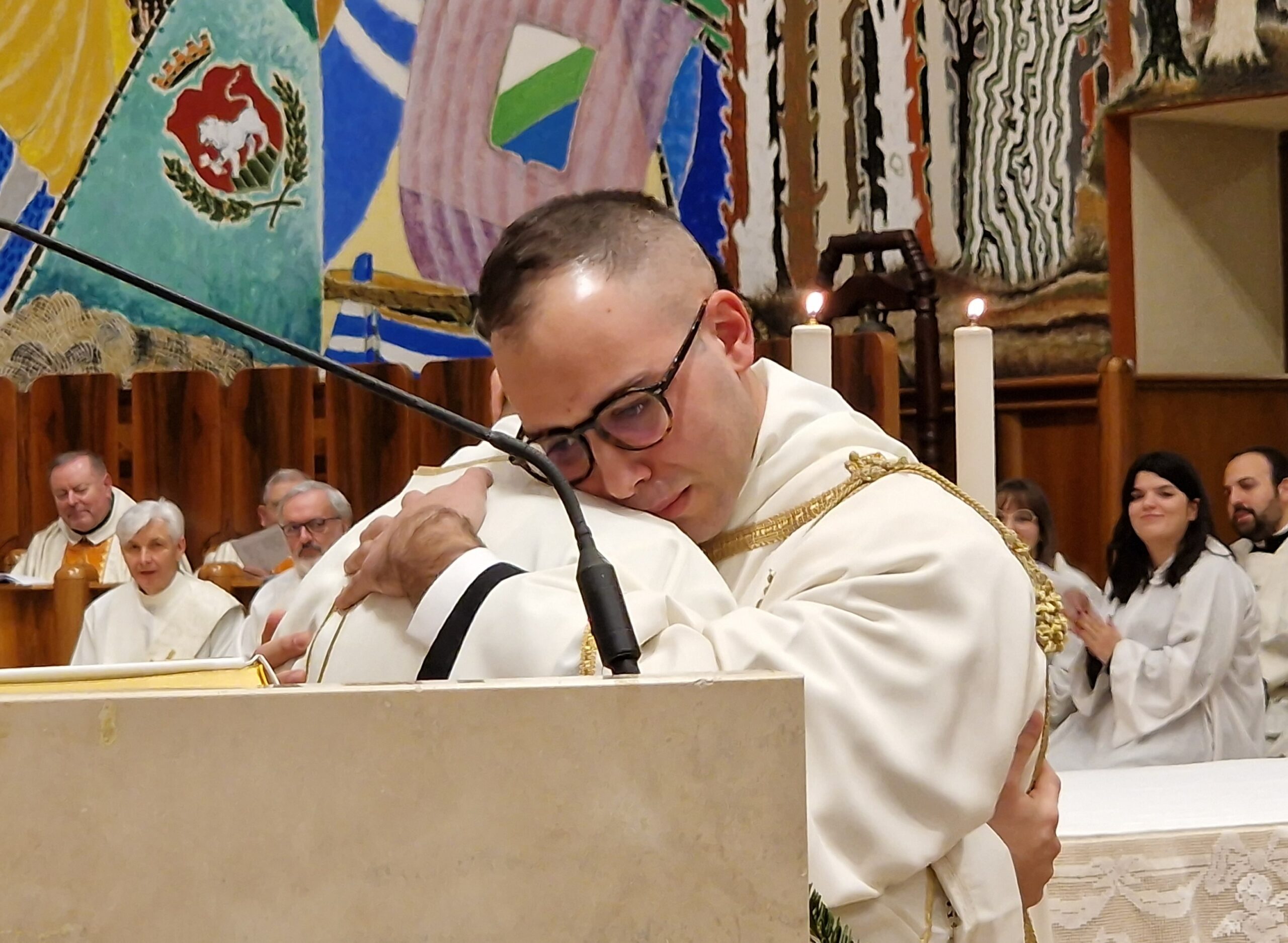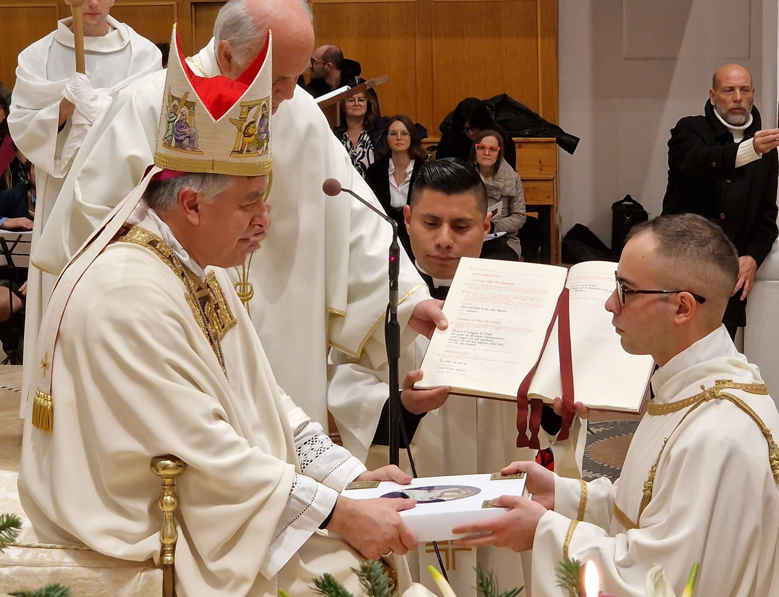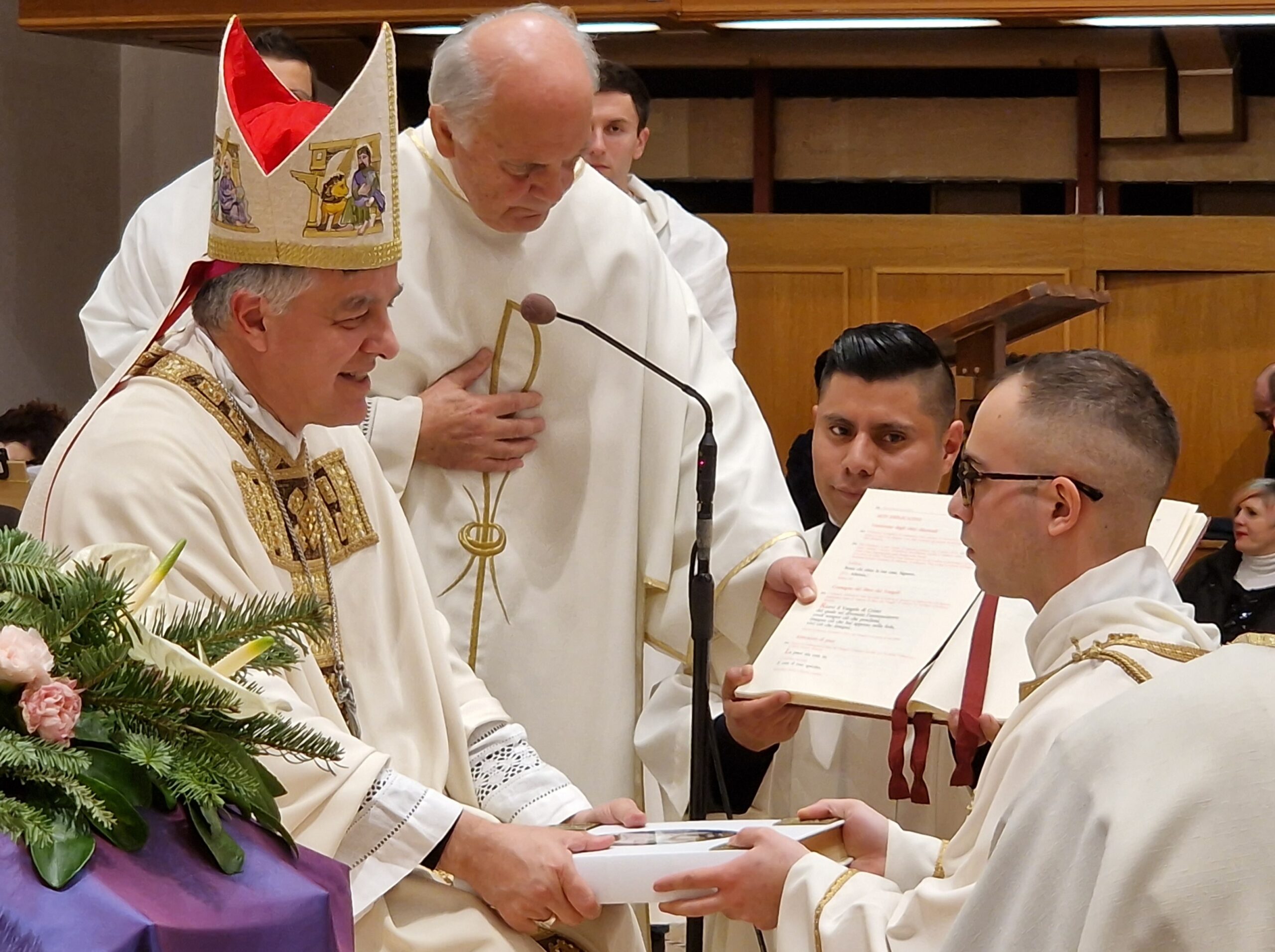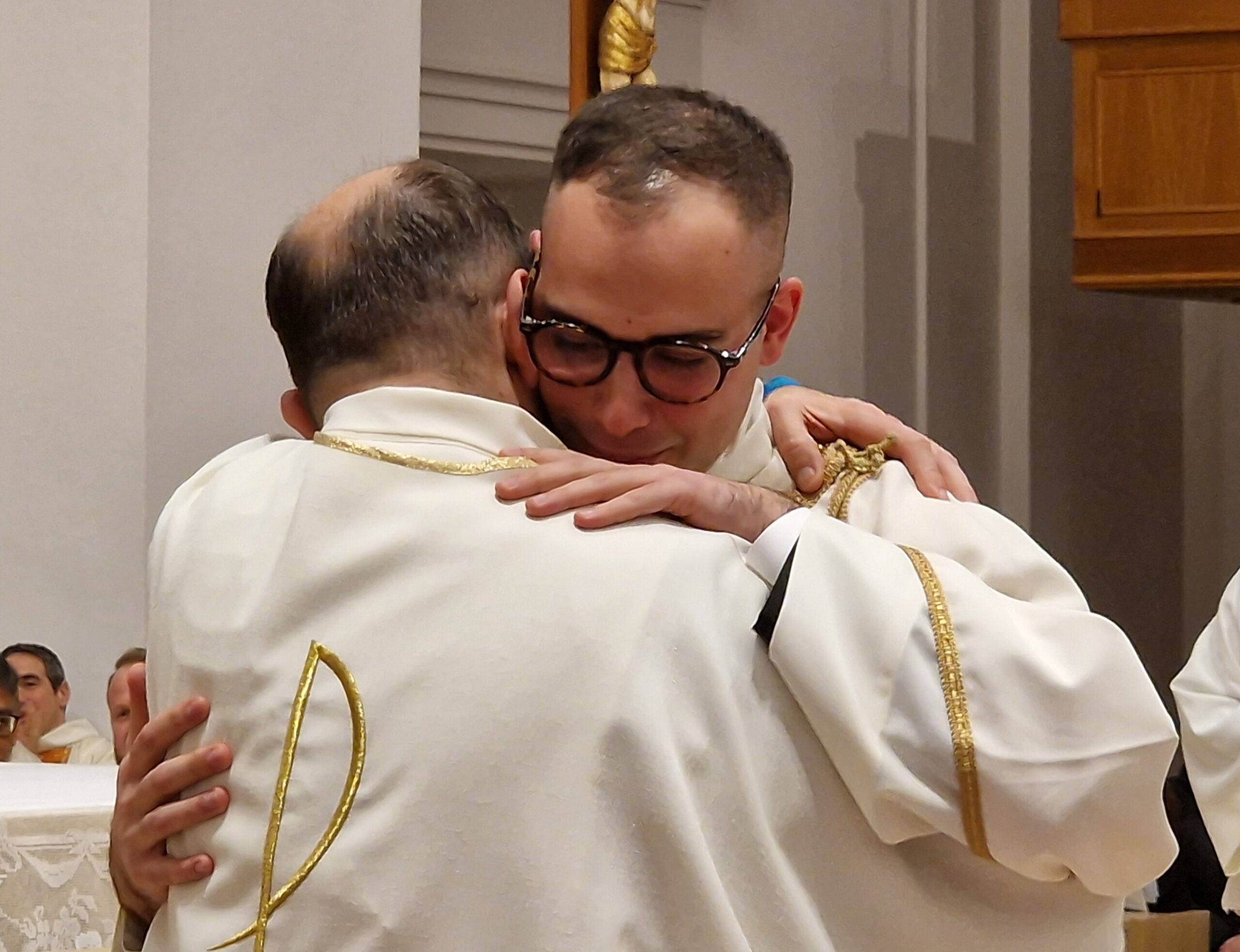 Sono poi seguiti tre segni importanti: la vestizione con gli abiti diaconali, la consegna del Libro dei Vangeli e l’abbraccio di pace.
