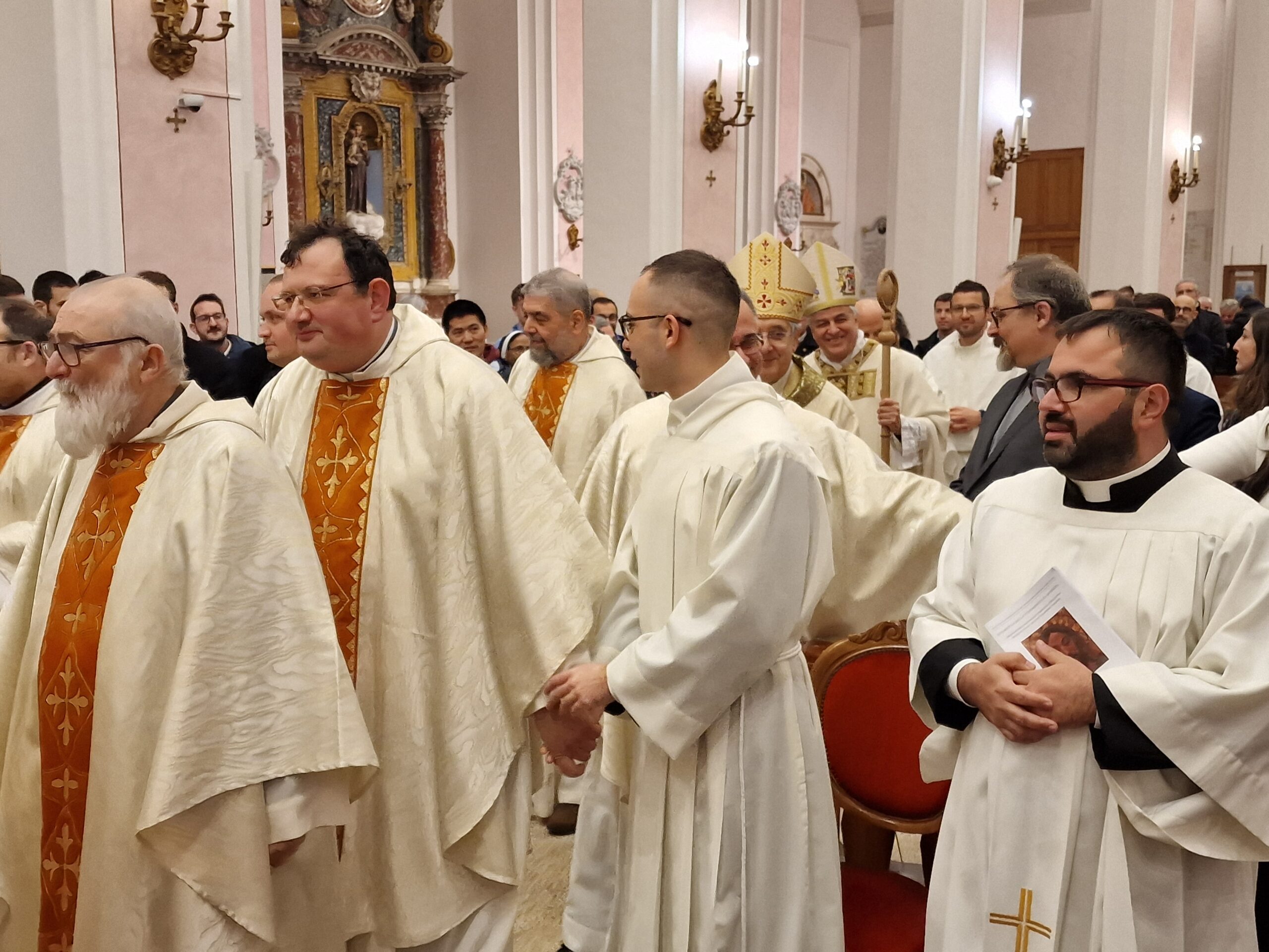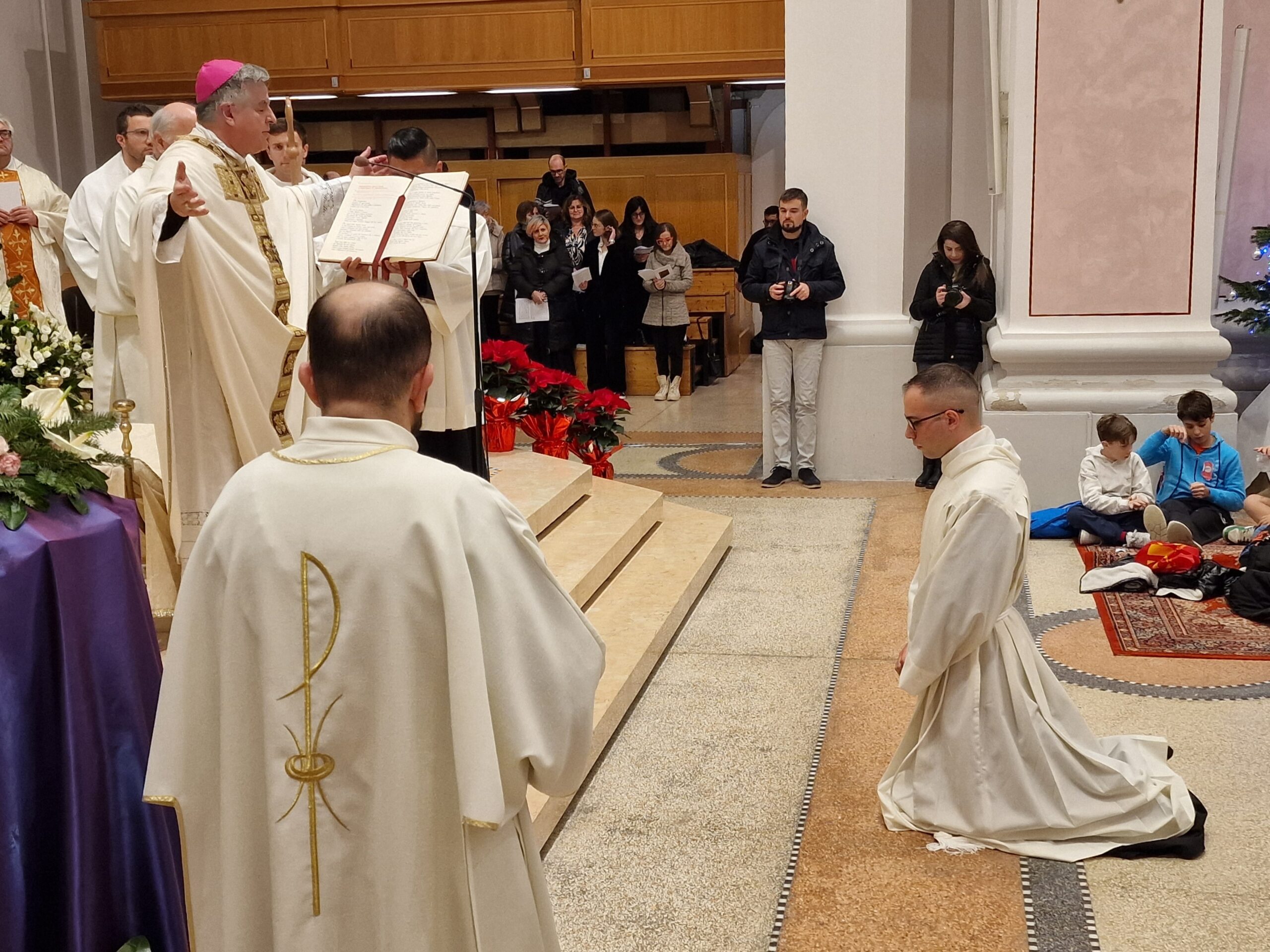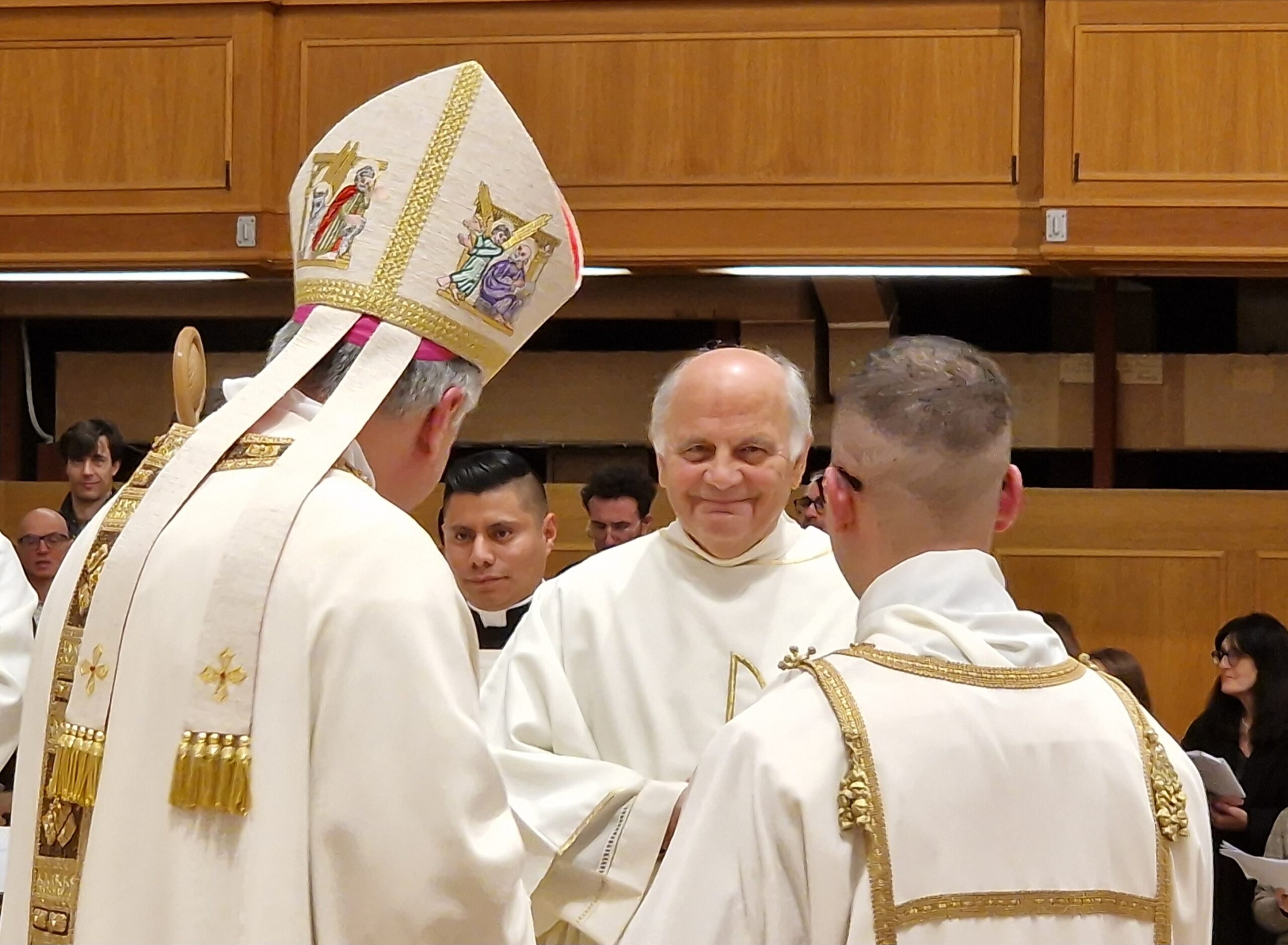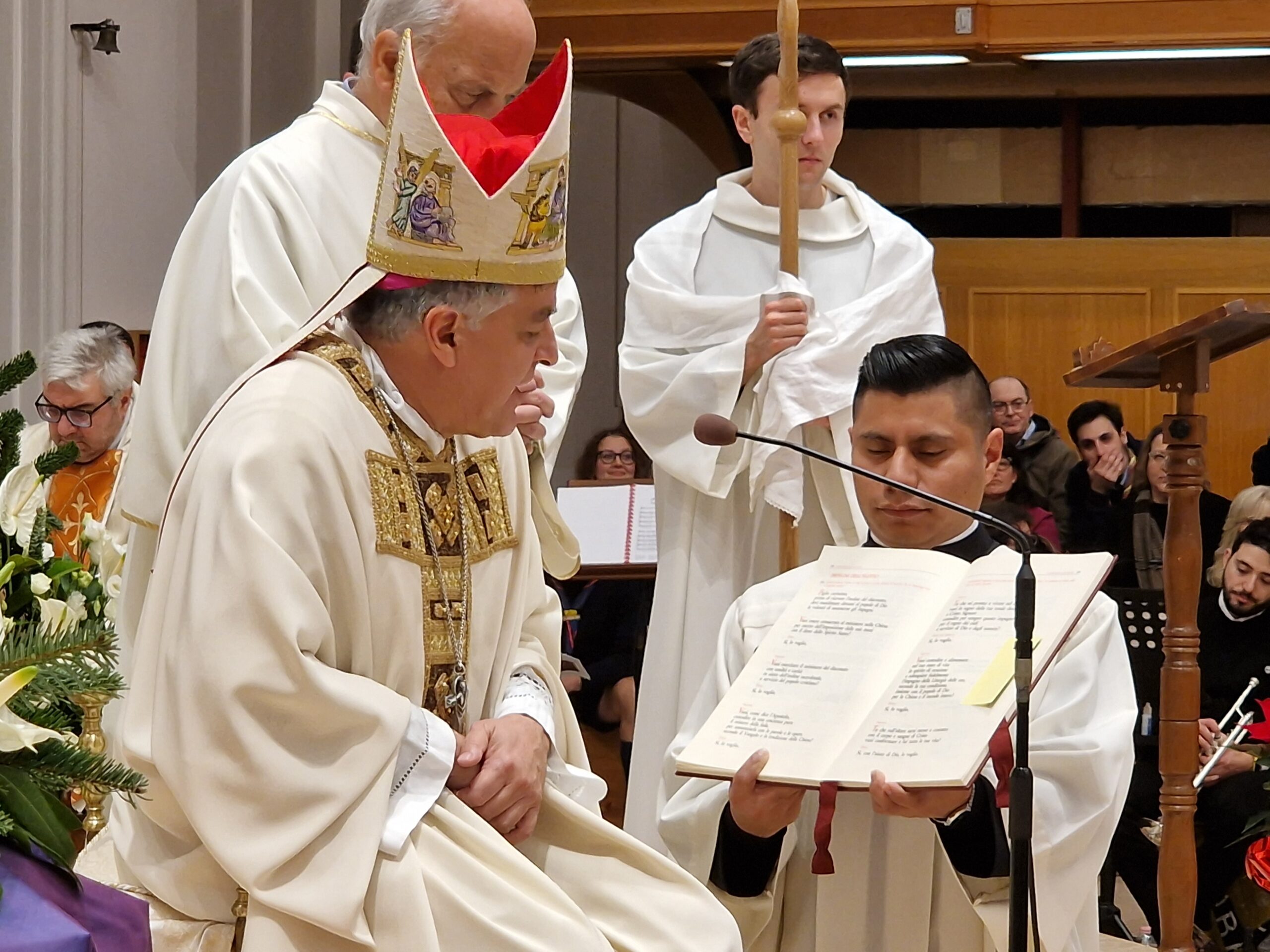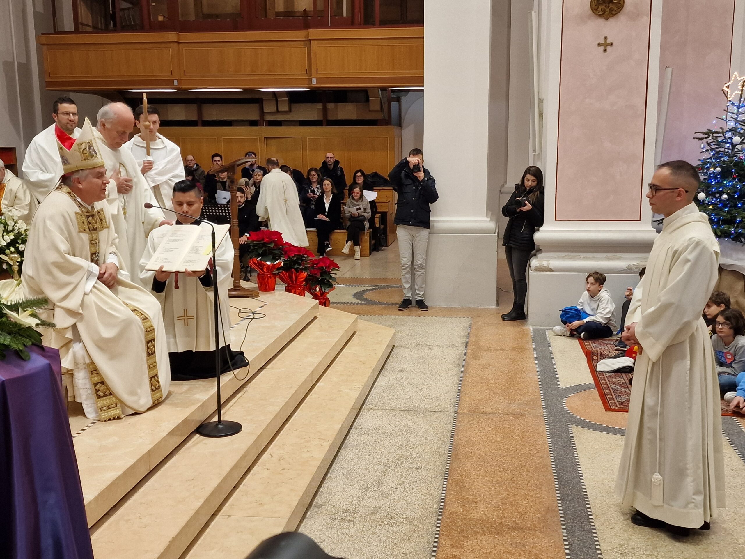 Sono poi seguiti tre segni importanti: la vestizione con gli abiti diaconali, la consegna del Libro dei Vangeli e l’abbraccio di pace.