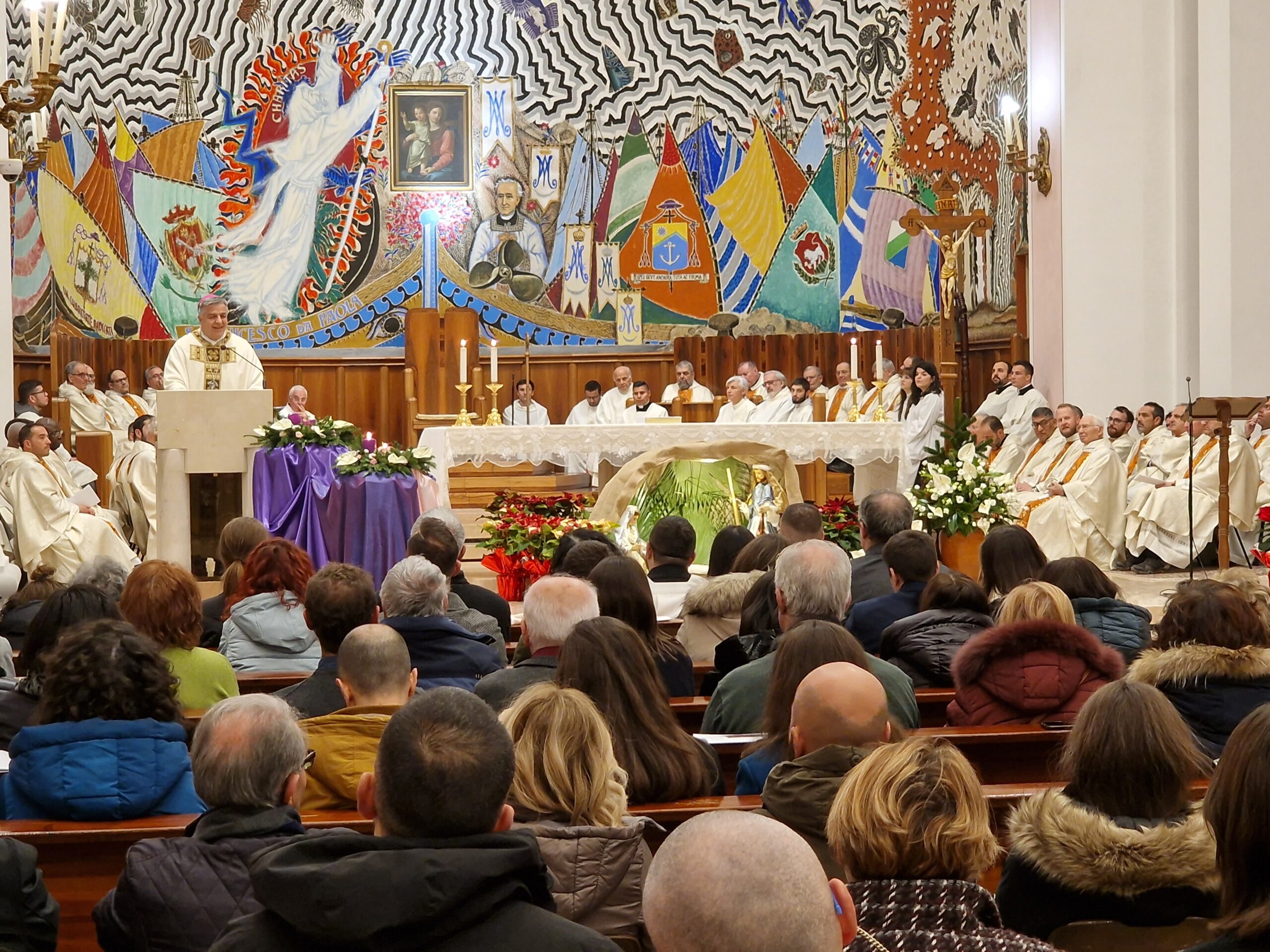 Il vescovo Gianpiero ha poi condiviso con i presenti un ricordo personale: «Mi permetti un ricordo personale, che ogni tanto mi ritorna nel cuore? – ha chiesto mons. Palmieri – Da giovane prete, ho incontrato e conosciuto, quando ormai era novantenne, l’anziano piccolo fratello Arturo Paoli. Aveva una strana luce sul viso, padre Arturo, e un sorriso non normale che veniva dall’anima. Spesso raccontava che, quando aveva quarant’anni e aveva importanti responsabilità pastorali, fu ingiustamente allontanato da tutto. Allora fuggì nel deserto con la scusa di imitare Charles de Foucault, ma in realtà era in preda al risentimento e alla tristezza. Durante un lungo anno di solitudine, il Signore, con delicatezza e con fermezza, si era avvicinato a lui, come si vede nel deserto arrivare un cammello in lontananza e poi sempre più vicino, ma il cammello – il Signore – gli diceva in maniera sempre più chiara: “Non sei tu che cerchi me, ma sono io che cerco te. Non sei tu che cambi il mondo, ma sono io che ti vengo a prendere, a salvarti dalle tue ferite, a farti camminare con me nel deserto”. Ecco, questo è il punto! Questa realtà della Luce nel buio va al di là di ogni ragionamento umano di buon senso. Rappresenta la variabile misterica della nostra esistenza, che da variabile diventa non variabile, ma fondamento della nostra vita. Un po’ come Elia, che, deluso e arrabbiato con il Signore, si rinchiude nel buio della grotta. E lì, nel silenzio della santa montagna, ode la voce di Dio che parla nel silenzio e che gli consegna una parola che apre gli occhi, che fa scoprire che Elia non è solo, bensì ci sono 4000 Israeliti che non hanno piegato le ginocchia a Baal … “E tu, Elia, non te ne sei neppure accorto!”».