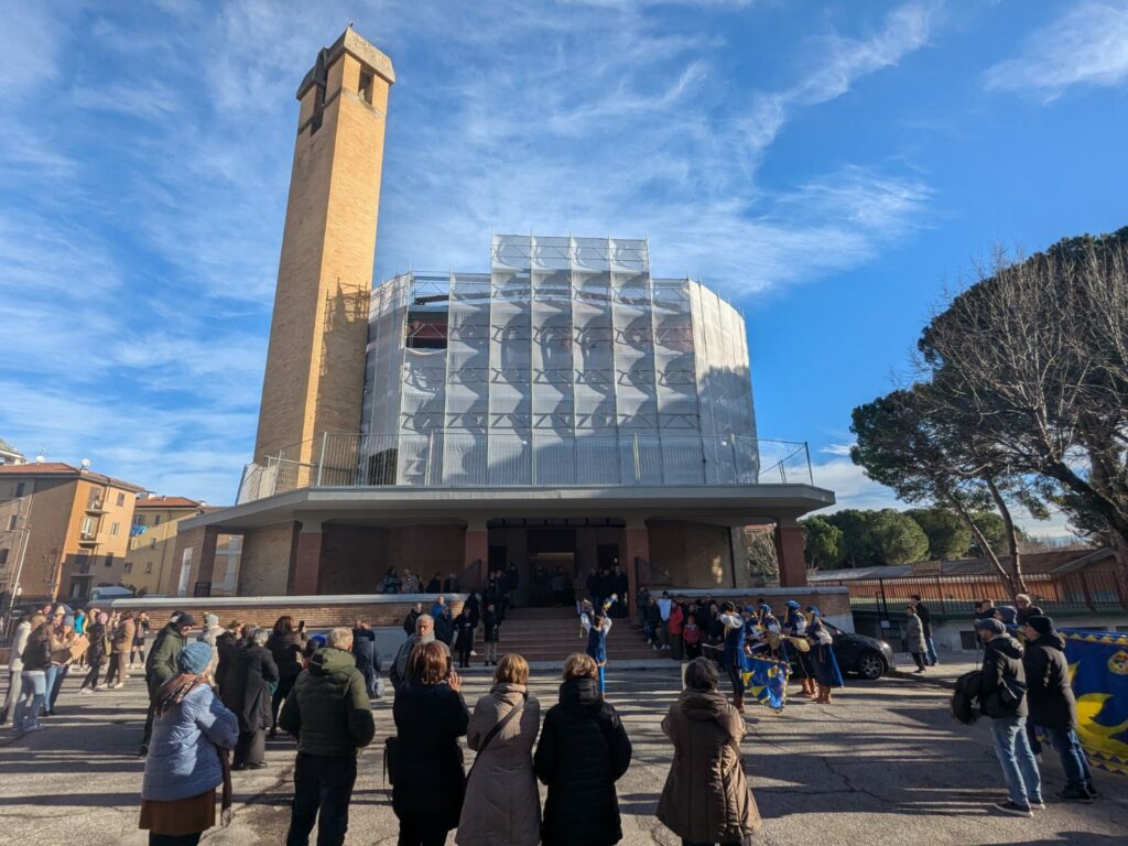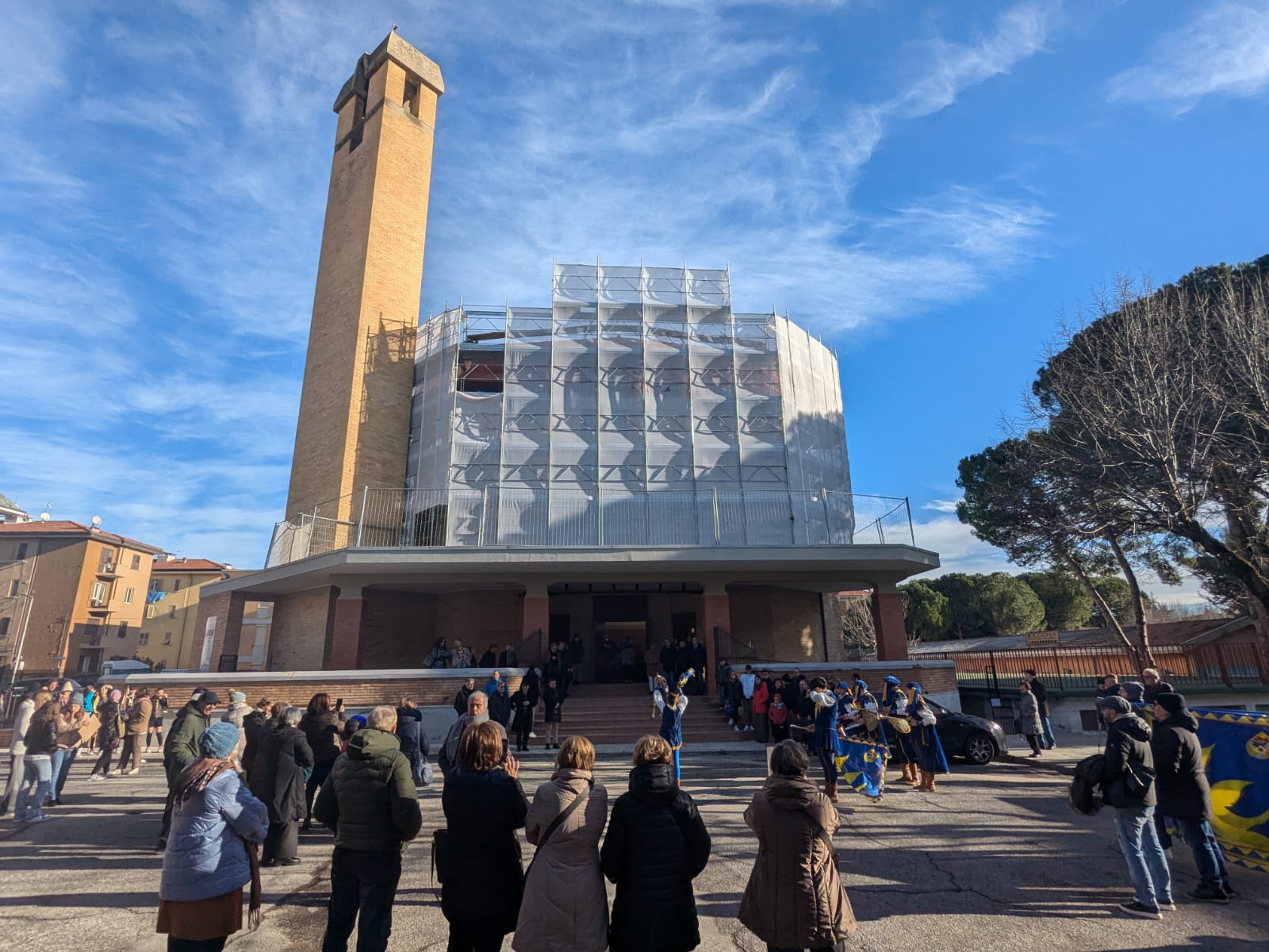 Una lunga attesa per la quale parrocchiane e parrocchiani sono stati ampiamente ripagati, come confermato dall’entusiasmo e dall’emozione che hanno caratterizzato una cerimonia di inaugurazione particolarmente partecipata. A partire dalle 10,15, la comunità cristiana locale si è ritrovata nel piazzale della chiesa, dove per l’occasione una delegazione di musici e sbandieratori del sestiere di Porta Solestà ha omaggiato la riapertura della chiesa del quartiere con un’esibizione a forti tinte quintanare, sottolineando l’indissolubile rapporto tra la parrocchia e il tessuto sociale di Porta Cappuccina.