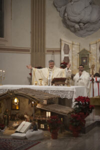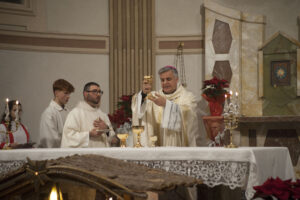 COMUNANZA – Una scelta inattesa, carica di significato e profondamente apprezzata. Quest’anno, il Vescovo Gianpiero Palmieri ha deciso di presiedere la Santa Messa della notte di Natale nella Chiesa di Santa Caterina d’Alessandria a Comunanza, condividendo con la comunità locale la gioia della nascita di Gesù Cristo. Un gesto che ha sorpreso e commosso i fedeli di questo territorio montano e della Vicaria.