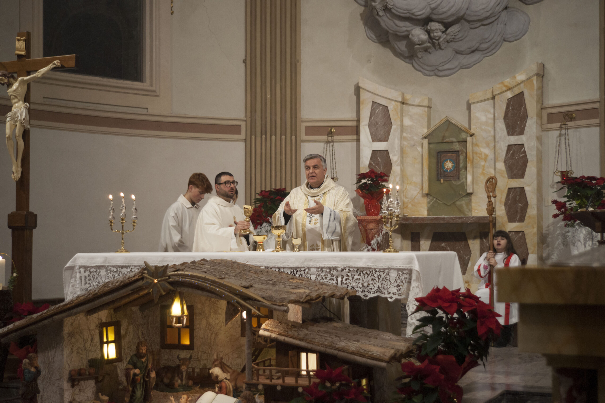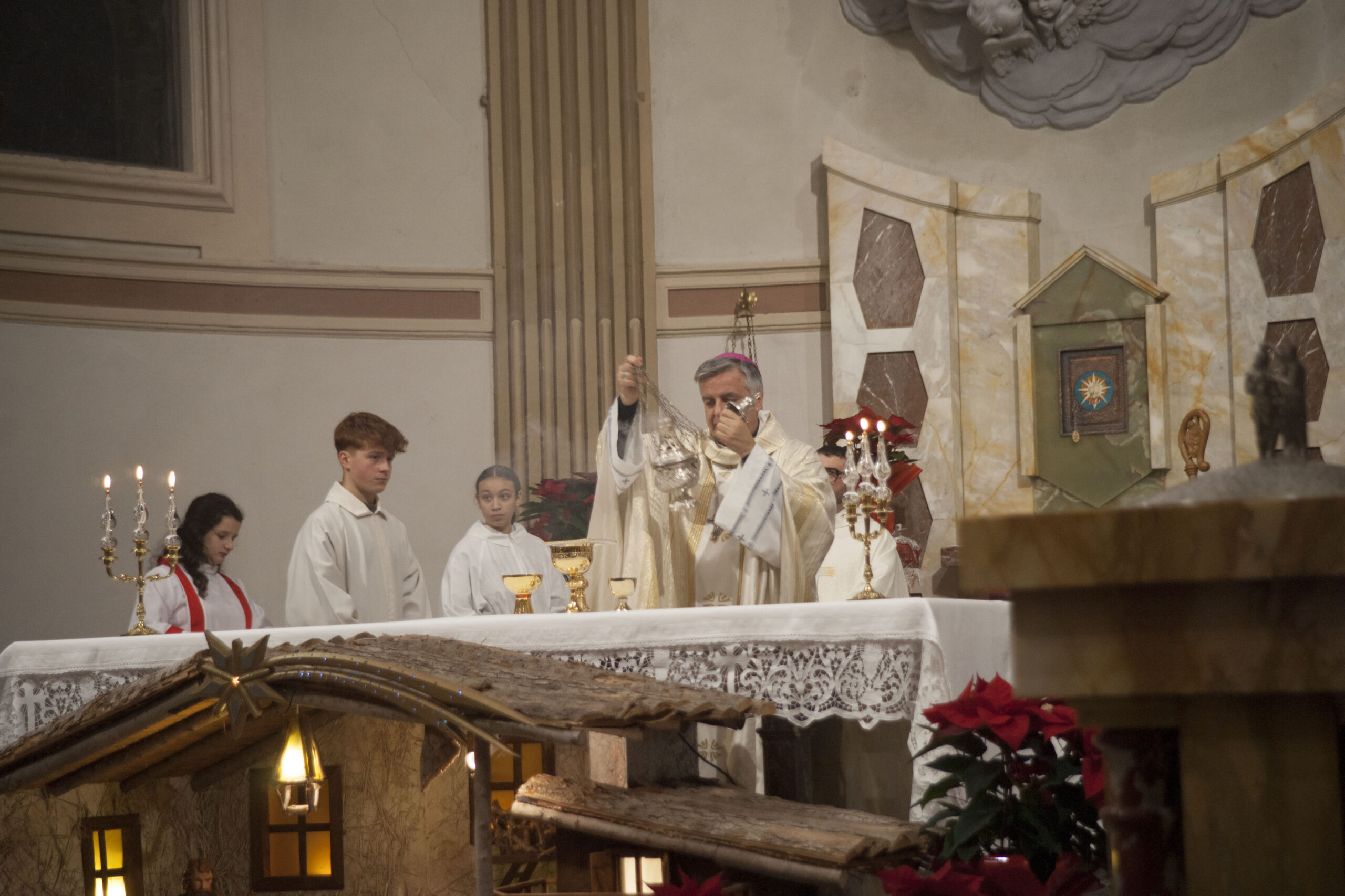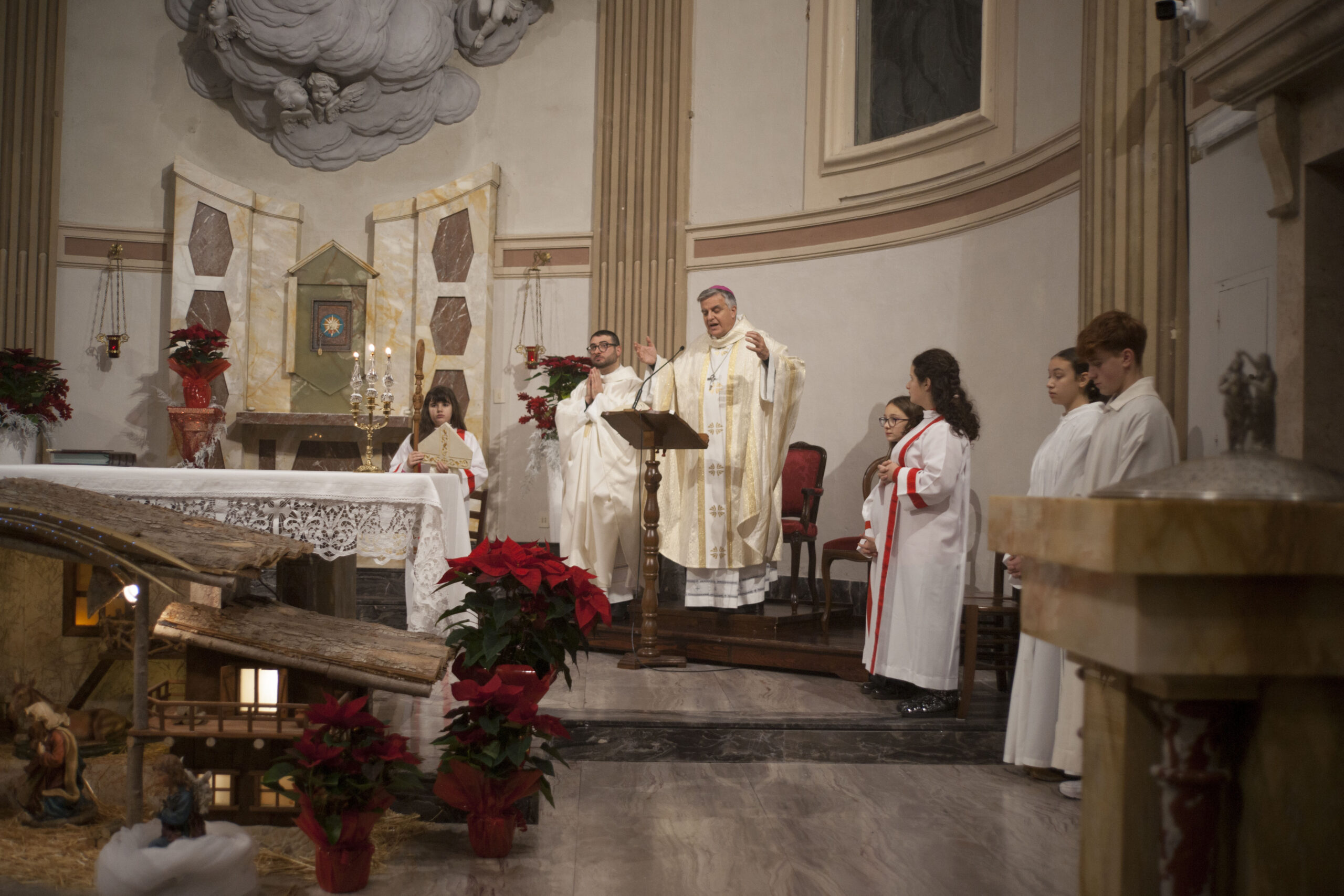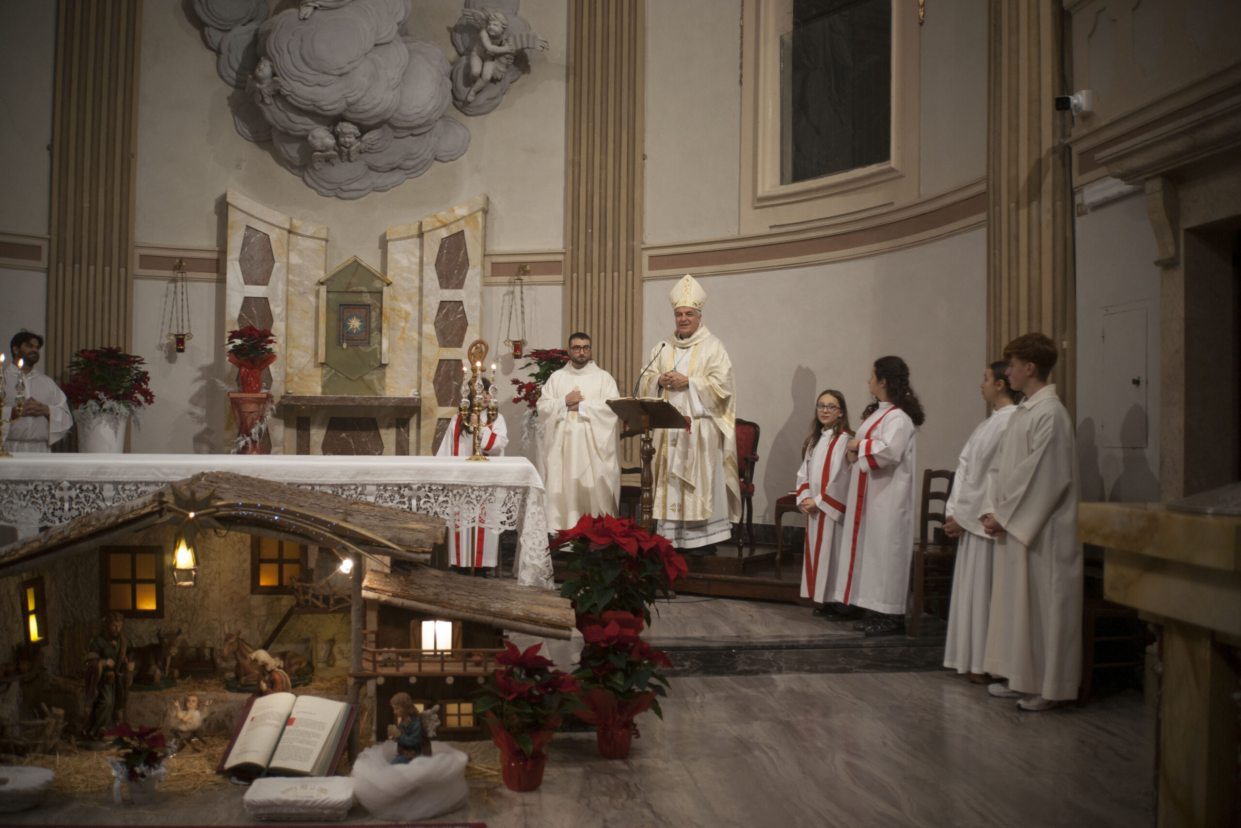 COMUNANZA – Una scelta inattesa, carica di significato e profondamente apprezzata. Quest’anno, il Vescovo Gianpiero Palmieri ha deciso di presiedere la Santa Messa della notte di Natale nella Chiesa di Santa Caterina d’Alessandria a Comunanza, condividendo con la comunità locale la gioia della nascita di Gesù Cristo. Un gesto che ha sorpreso e commosso i fedeli di questo territorio montano e della Vicaria.