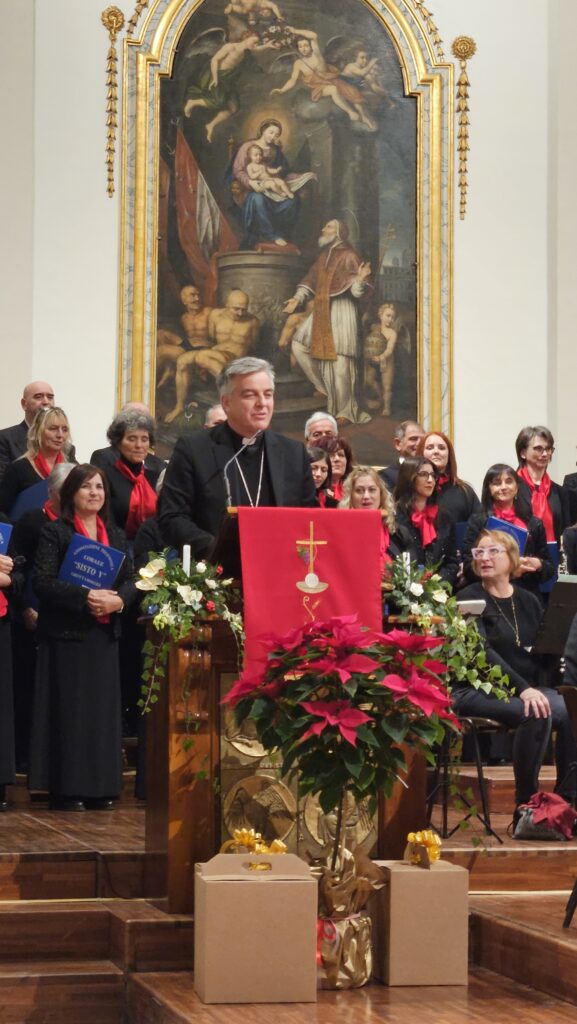 GROTTAMMARE – “La musica fa parte della liturgia e, questa sera, con il Concerto di Natale ci consente di contemplare la Verità del Mistero dell’Incarnazione. Vi ringrazio per essere qui.” Con queste parole il Vescovo di San Benedetto del Tronto – Ripatransone – Montalto e di Ascoli Piceno, Mons. Gianpiero Palmieri, ha dato il benvenuto ai fedeli accorsi numerosi nella Chiesa di San Pio V per assistere al tradizionale Concerto di Natale, giunto alla sua 44ª edizione.