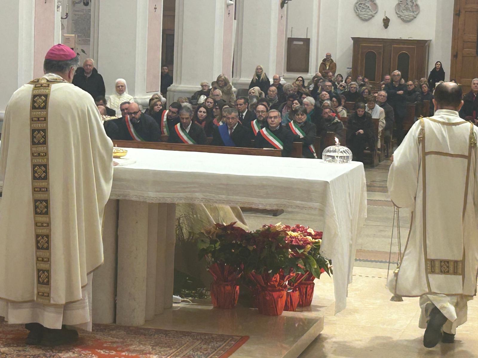 Anche nelle nostre Diocesi di San Benedetto del Tronto-Ripatransone-Montalto e di Ascoli Piceno il Vescovo Mons. Gianpiero Palmieri ha presieduto la Santa Messa alle ore 18,00 presso la Cattedrale di Santa Maria della Marina a San Benedetto del Tronto alla presenza dei sindaci, degli amministratori, delle autorità militari delle due diocesi e dei numerosi fedeli.