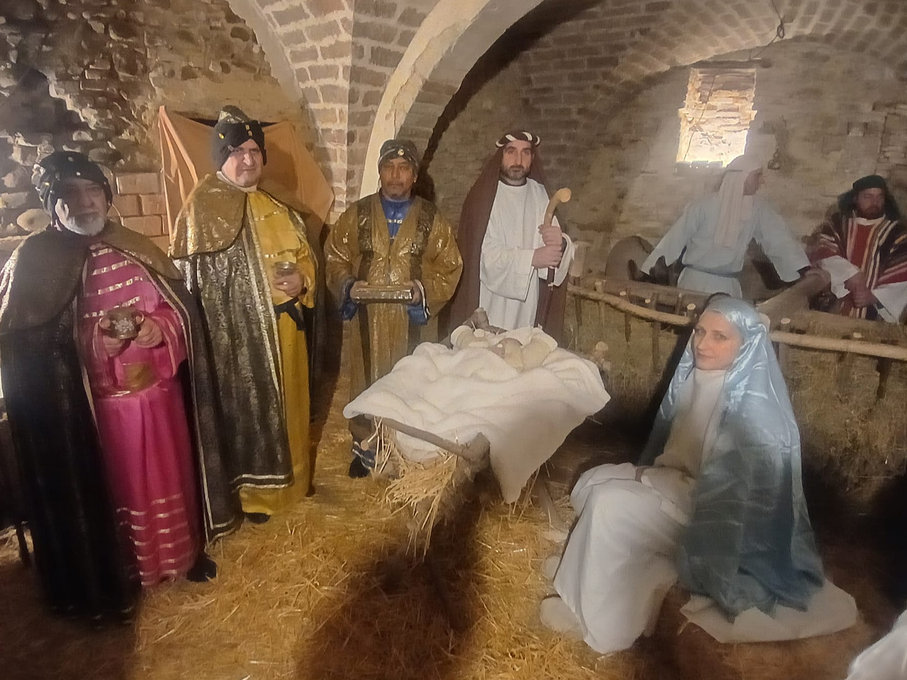 I visitatori hanno quindi potuto iniziare il loro viaggio lungo il centro storico della cittadina abruzzese, incontrando lungo il percorso giocolieri, arcieri, musicanti con cornamuse, danzatrici del ventre, soldati romani a cavallo, schiavi, cambiavalute, scribi, aruspici, giocatori di dadi, astrologi, ma anche pescatori, pastori e artigiani che svolgevano antichi mestieri, come il fabbro, il bottaio, il vasaio, la massaia, lo scriba, la casara, il mercante, il ramaio, il bottaio, l’arrotino e tanti altri. Numerose e bellissime le scene tratte dai racconti evangelici, come l’Annunciazione dell’Angelo a Maria, la Visitazione di Maria ad Elisabetta, il Censimento e la Corte di Erode, anche se la scena che maggiormente ha attirato l’attenzione e lo stupore dei visitatori è stata, come di consueto, quella della Natività con l’arrivo dei Magi e soprattutto la vista del Bambinello. Quest’anno la Sacra Famiglia è stata rappresentata da Alessia Straccia e Fabio Di Sabatino, con il loro piccolo Valerio di appena due mesi. Presenti lungo il percorso anche tre punti di ristoro e una generosa Befana, che ha elargito caramelle e dolci ai piccoli visitatori.