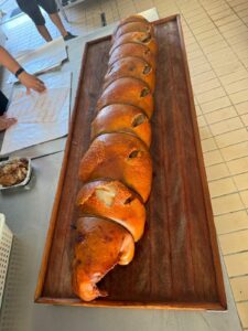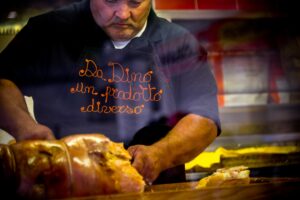 La porchetta è sempre stata presente nella nostra famiglia! Era un elemento immancabile in ogni evento, banchetto o cerimonia. Mio padre Dino organizzava tutto scrupolosamente, creando momenti di felicità con amici e parenti. Ad ogni nascita – Dino ha avuto quattro figli – si festeggiava con la porchetta, un simbolo di unione e condivisione. Questa passione ha portato mio padre, nel gennaio 2014, ad aprire l’attività “Porchetta Di Felice”, trasformandola in un vero e proprio lavoro. Da allora, ho iniziato ad affiancarlo, cercando sempre di migliorare.