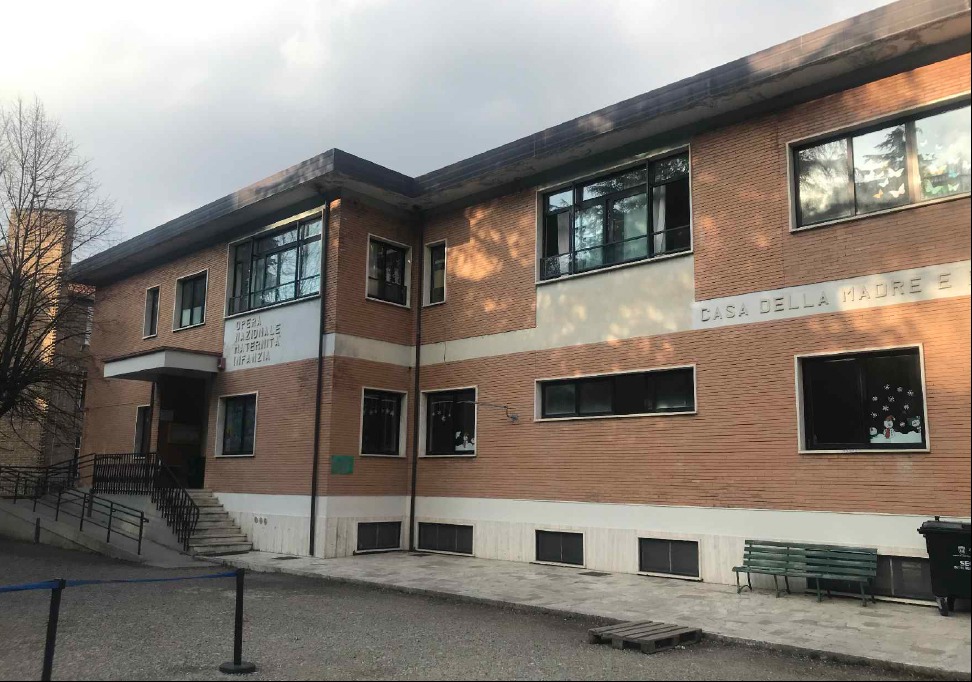 Il progetto prevede la rimozione del rivestimento a listelli di mattoni e in lastre di travertino esistente presente su tutti i prospetti, la rimozione delle soglie e delle cornici in travertino delle porte e delle finestre, la demolizione della rampa disabili e delle scale tre scale esterne, la realizzazione di cappotto sismico armato su tutti i prospetti opportunamente ancorato alle travi di piano e sul cornicione di copertura , nuove scale e rampa disabili in acciaio, il rifacimento dell’impianto idronico di distribuzione del fluido termovettore caldo e della centrale termica e idrica. Al fine di ottenere l’adeguamento sismico della struttura, è prevista la realizzazione di un cappotto strutturale e l’introduzione di un sistema strutturale aggiuntivo in grado di resistere per intero all’azione sismica.