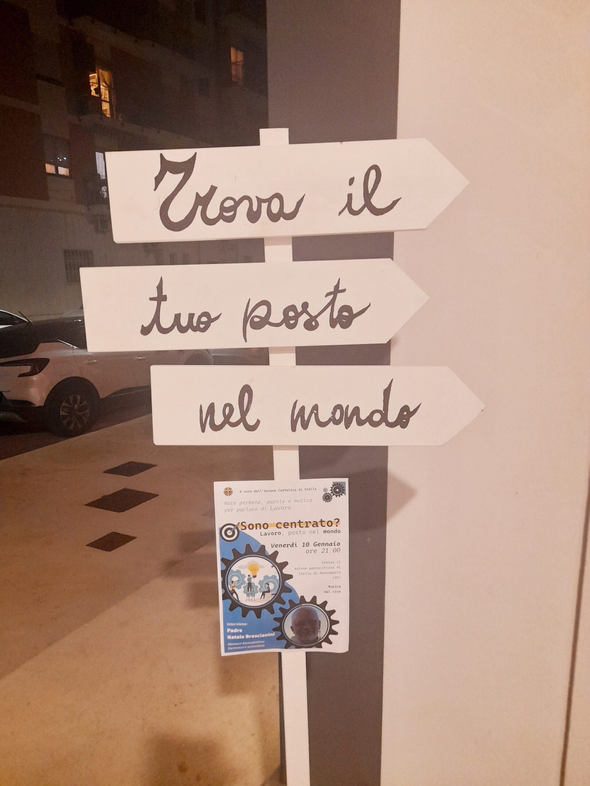 L’appuntamento, dal titolo “Sono centrato? Lavoro, posto nel mondo”, rientra nell’ambito dell’iniziativa “Note per bene“ organizzata dall’Azione Cattolica parrocchiale ed ha visto protagonista anche la musica: Marco Sabatini alle tastiere, Claudio Bernardo Carini al basso, Paolo Pizzingrilli alla chitarra e la potente voce di Silvia Palermi hanno infatti dato ritmo alla serata con musica e canto dal vivo, intrattenendo piacevolmente tutti i presenti.