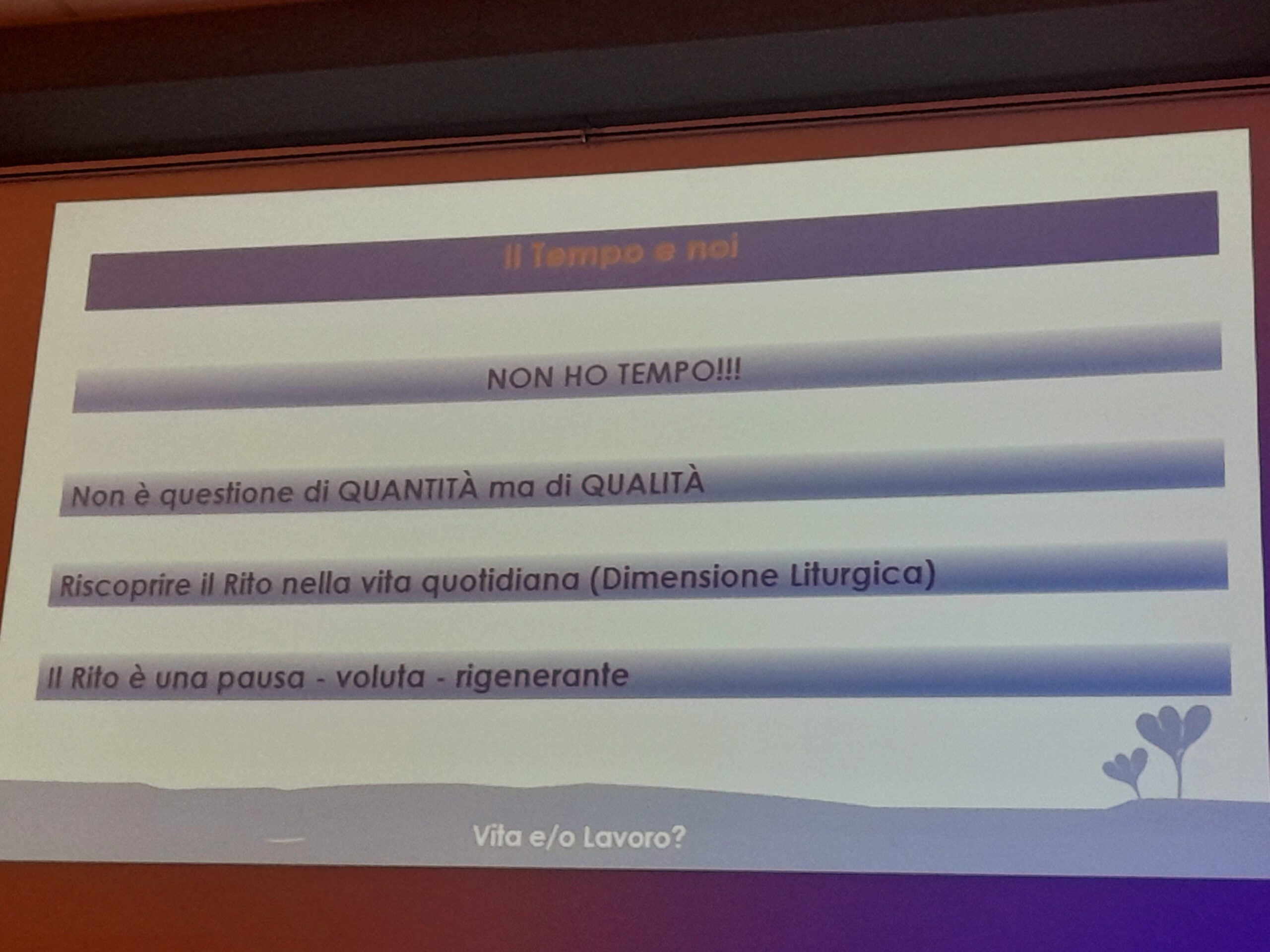 Il lavoro è anche un luogo teologico, cioè da vivere come una liturgia eucaristica: il lavoro è dunque uno strumento per rendere grazie a Dio. «Se il mondo del lavoro viene visto così, il Lunedì non è più un giorno sfigato – ha detto Brescianini –, perché ruba tempo e spazio alle cose della mia vita, quelle che faccio nel week-end o durante le ferie. Molte persone, infatti, vivono i giorni feriali come una lunga attesa per poi vivere la vera vita nel week-end. È come buttarsi in piscina e stare in apnea dal Lunedì al Venerdì pomeriggio, per poi tornare a respirare dal Venerdì sera in poi. Per noi cristiani, invece, la settimana inizia dalla Domenica, giorno in cui ricarichiamo le pile per affrontare tutta la settimana, tutta la vita. In quest’ottica,