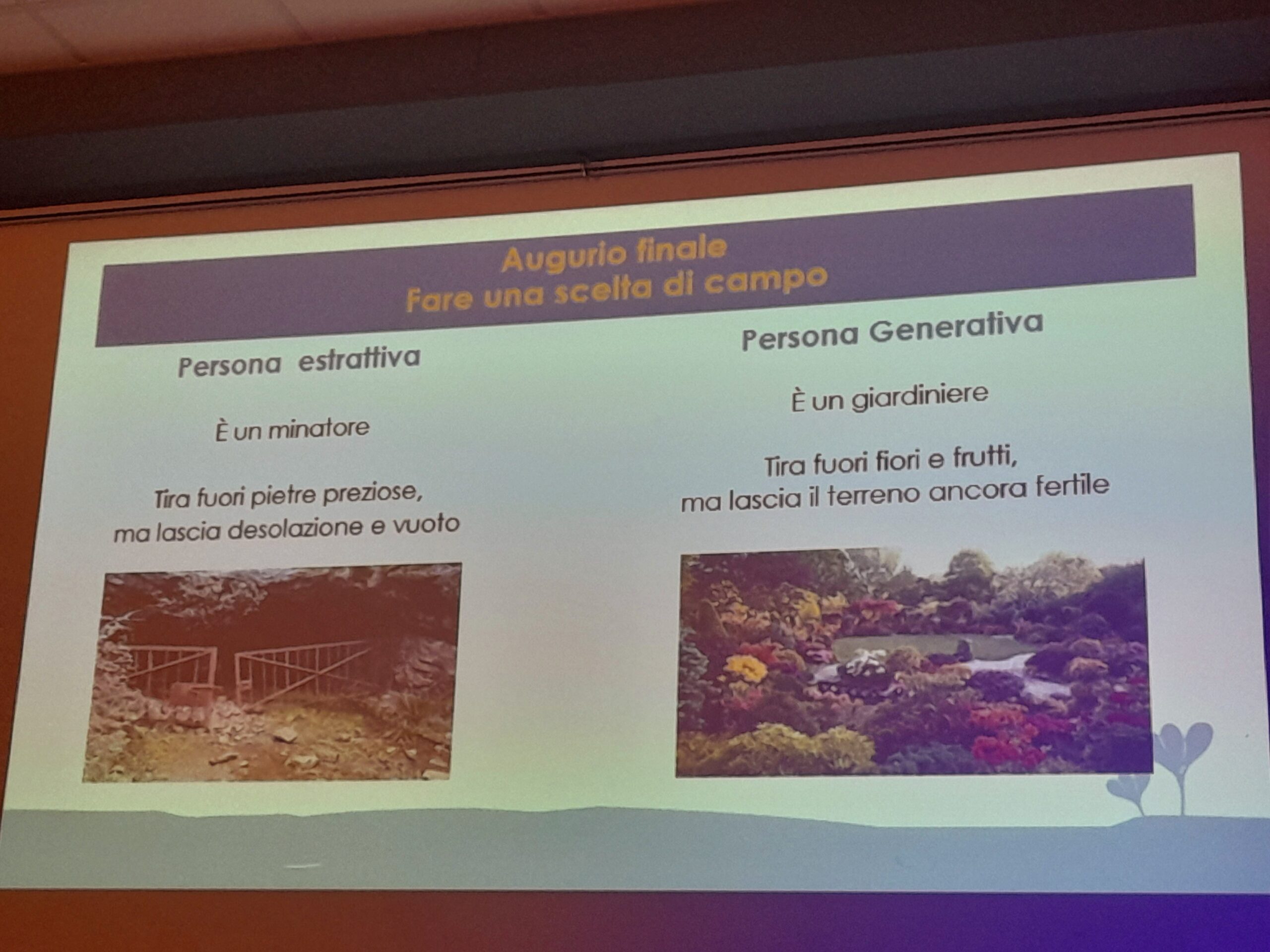 La doppia natura del lavoratore invece mi ha fatto riflettere sui vari bisogni della società: da una parte un lavoratore “estrattivo” che, come un minatore, punta a trarre il più possibile dall’ambiente che vive, ma senza curarsi troppo del futuro; dall’altra, al contrario, il lavoratore “generativo” che, come un giardiniere, pensa forse più a tutelare l’ambiente per il futuro che non a trarne il massimo subito. Occorre quindi essere maggiormente giardinieri e puntare in questa direzione nella formazione delle nuove figure professionali».