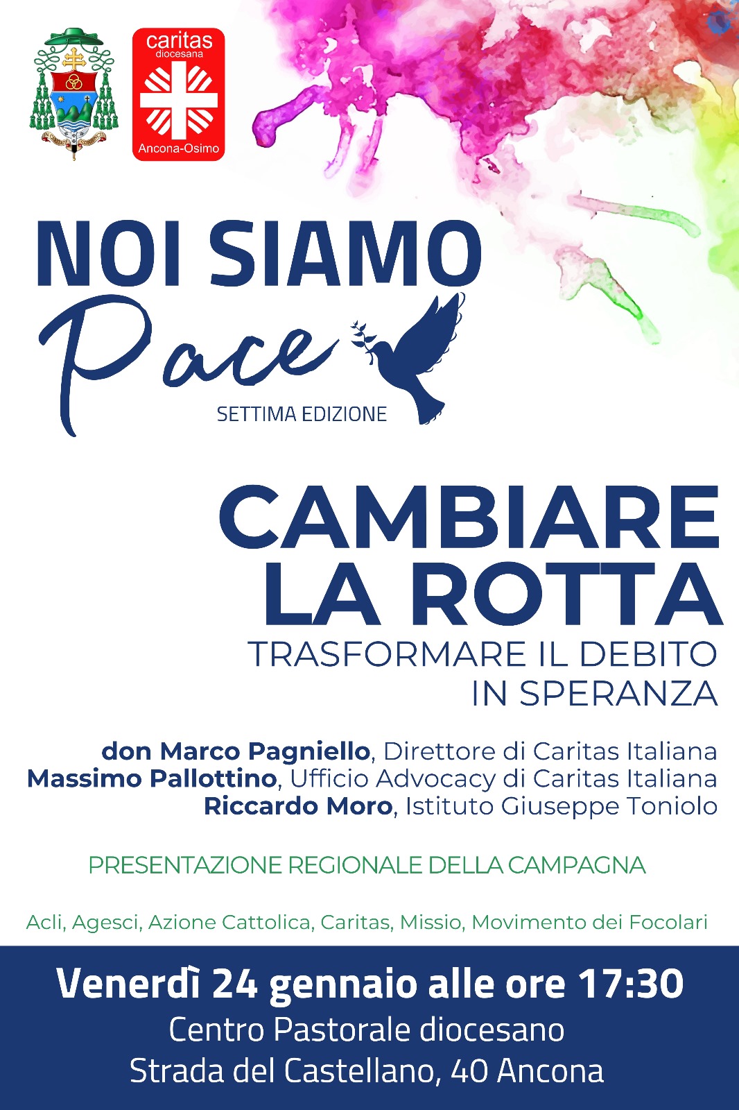 MARCHE – La Caritas Diocesana di Ancona-Osimo organizza la settima edizione dell’evento “Noi Siamo Pace,” un’occasione di riflessione e confronto sul tema della solidarietà e della giustizia sociale. Quest’anno, il tema centrale sarà “Cambiare la Rotta: Trasformare il Debito in Speranza.”