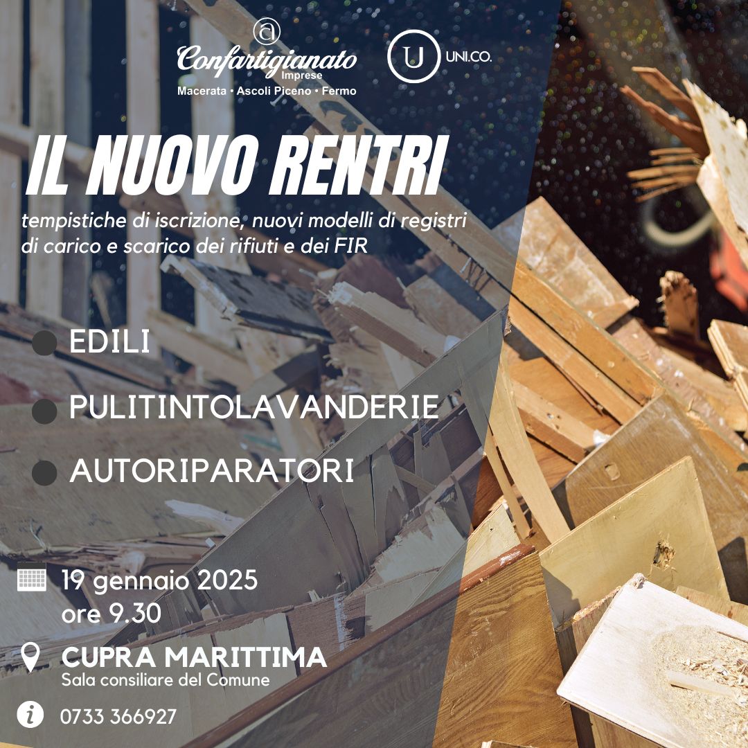 CUPRA MARITTIMA – Domenica 19 gennaio 2025, alle ore 9.30 presso la Sala Consiliare del Comune di Cupra Marittima, si terrà l’incontro dedicato a Edili, Autoriparatori e Pulitintolavanderie a cura della Confartigianato.