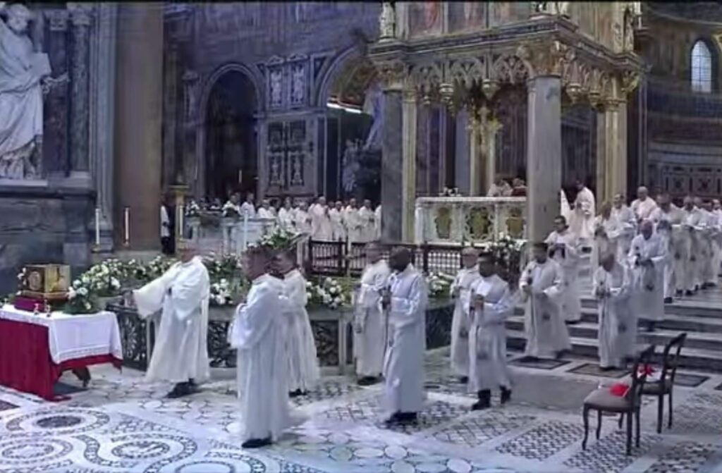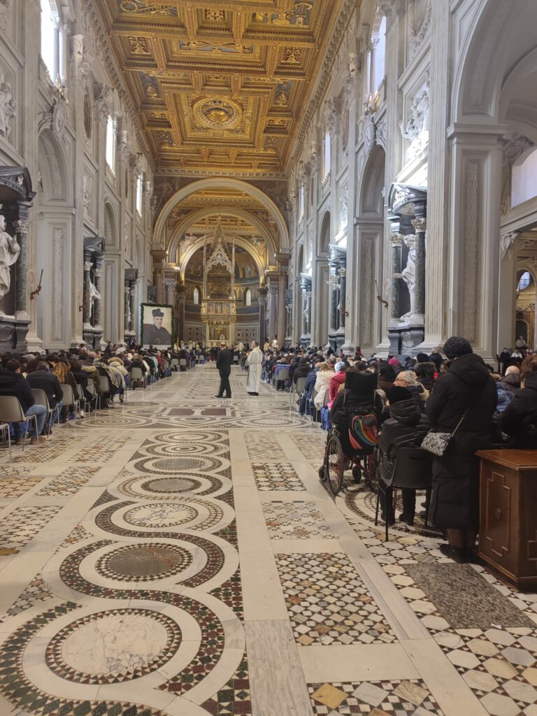 La cerimonia di beatificazione, presieduta dal Cardinale Marcello Semeraro, Prefetto del Dicastero delle Cause dei Santi, si è svolta in una basilica gremita di fedeli. Presenti, tra gli altri, il Cardinale Baldassarre Reina, Vicario della Diocesi di Roma, e il Cardinale Angelo De Donatis, Penitenziere maggiore, insieme a numerosi sacerdoti e delegazioni provenienti anche dall’estero.