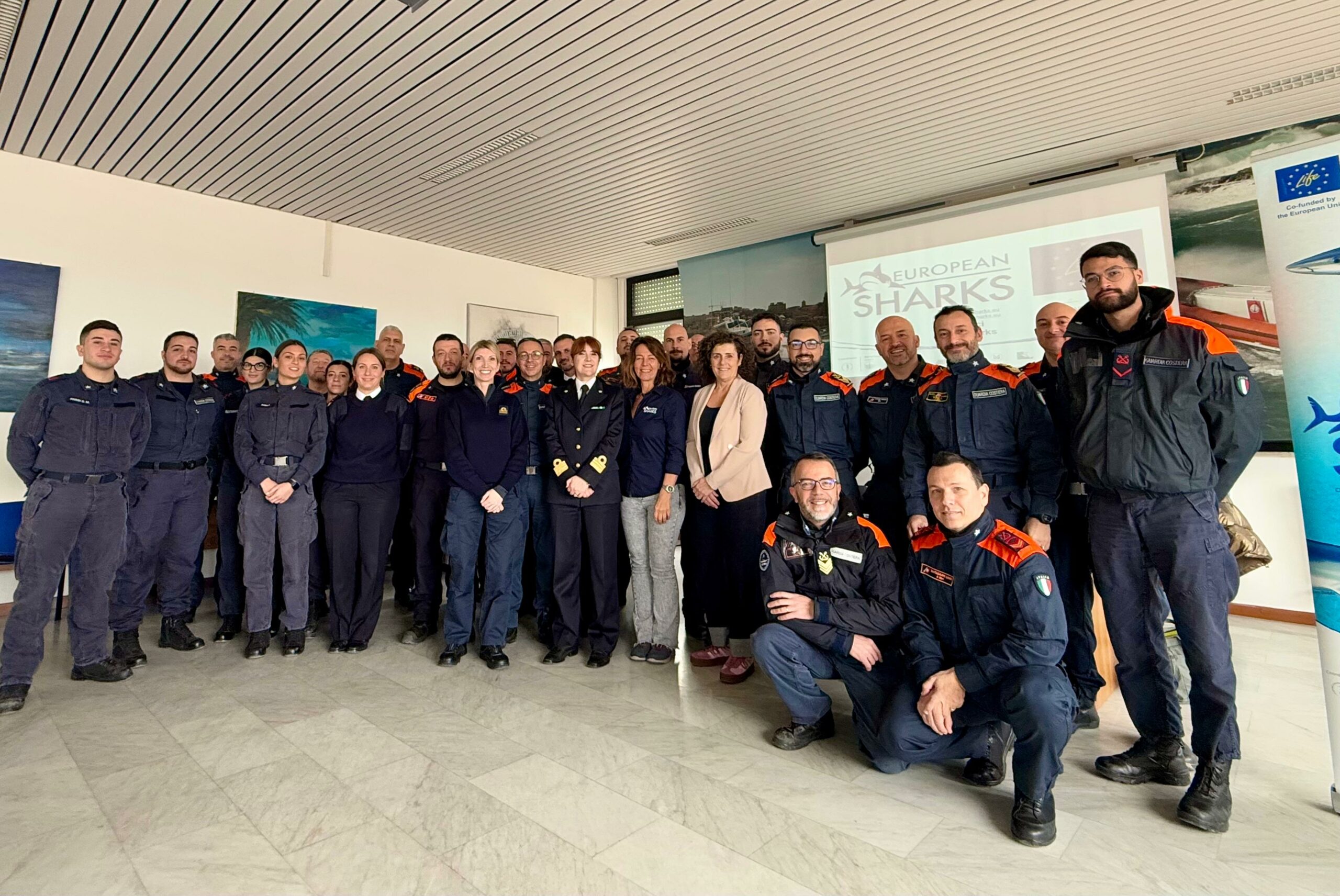 Venerdì 24 Gennaio una trentina di militari della Guardia Costiera, provenienti da tutta la costa marchigiana, ha partecipato nella sede della Capitaneria sambenedettese al primo corso di formazione sulle specie protette di pesci cartilaginei previsto nelle Marche dal progetto europeo, che vede il Corpo delle Capitanerie di Porto fra i partner beneficiari.