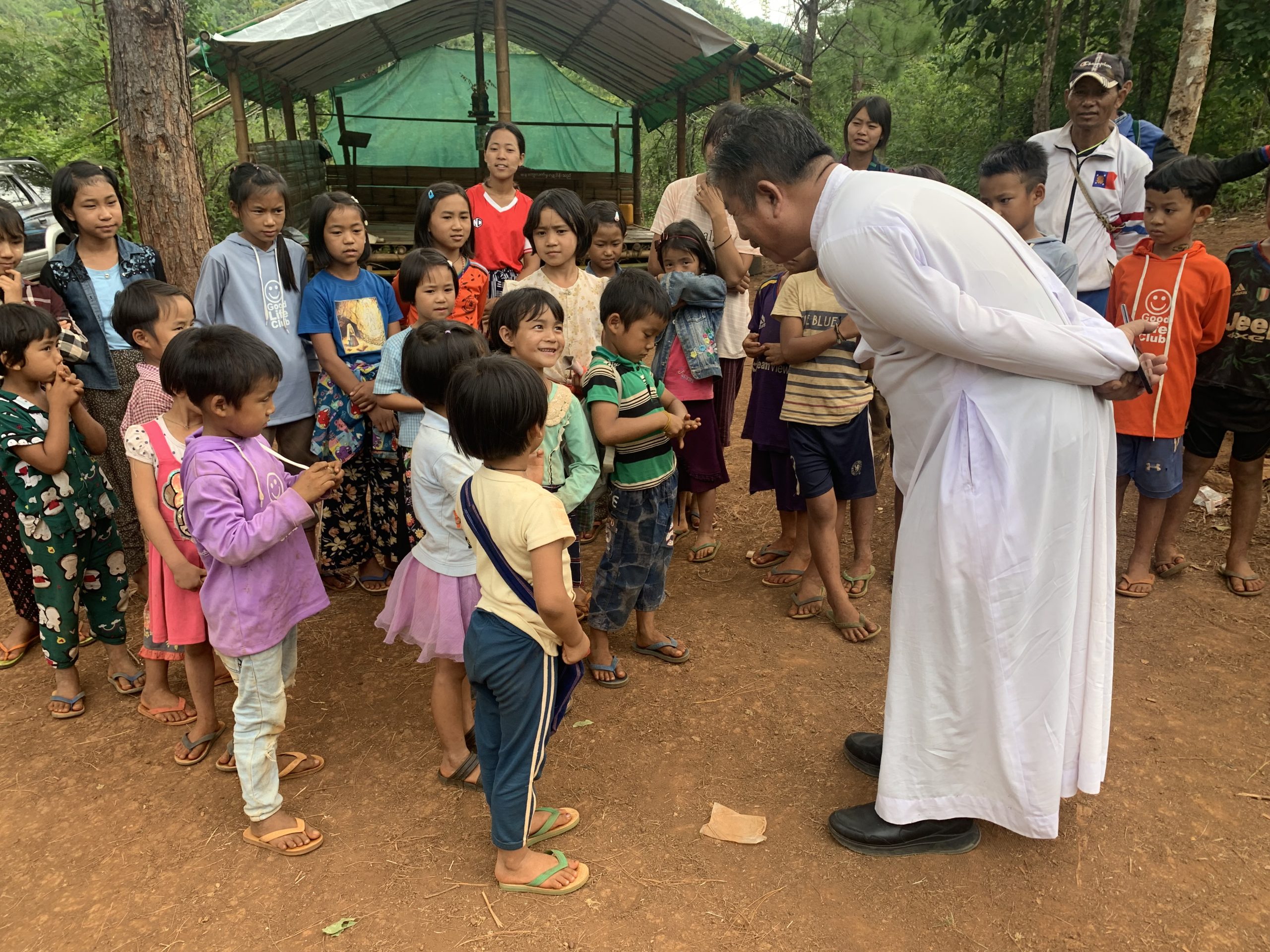Il momento più difficile per me è arrivato il 27 novembre 2023, quando ho dovuto prendere la dolorosa decisione di lasciare la cattedrale e il centro diocesano di Loikaw, la capitale dello Stato di Kayah. A quel punto, la città era già stata gravemente colpita da intensi combattimenti tra l’esercito e le Forze di difesa popolare (Pdf). La maggior parte dei residenti era fuggita nei primi giorni e noi eravamo rimasti con 73 persone: sacerdoti, personale religioso e 37 sfollati interni (Idp), tra cui malati, anziani e disabili che non potevano muoversi da soli. Siamo rimasti nel centro per due settimane, resistendo in mezzo alla violenza e ai bombardamenti, sperando che i combattimenti si placassero. Ma la notte del 26 novembre, quando il centro diocesano fu colpito più volte dall’artiglieria e da pesanti bombardamenti, mi resi conto che la situazione era diventata troppo pericolosa per restare ancora. Fu con il cuore pesante che presi la decisione di andarmene, era il 27 novembre, sapendo che la nostra sicurezza e il nostro benessere dipendevano dall’uscire dalla zona.Fu un momento di profonda difficoltà, poiché dovetti bilanciare l’esigenza di sicurezza con la profonda responsabilità che sentivo per le persone di cui mi prendevo cura.