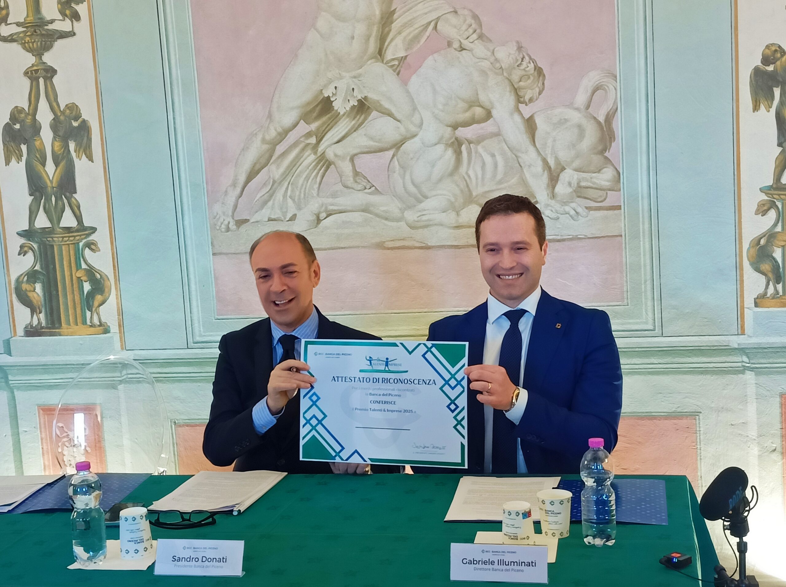 La Banca del Piceno pone sempre la persona al centro di ogni scelta e valutazione. Un concetto che trova conferma anche nell’istituzione del premio Talenti & Imprese che, come dichiarato dal Presidente della Banca del Piceno Sandro Donati, verrà conferito con l’intento di dare un riconoscimento al talento degli imprenditori, condizione necessaria sulla quale costruire il successo di un’azienda. «La nostra Banca – ha affermato – crede fermamente nelle potenzialità dell’ecosistema economico e sociale del nostro territorio di riferimento. Confidare nelle capacità e quindi nei talenti delle persone è, a mio avviso, la condizione principale per una banca di comunità come quella del Piceno. Il regista e scrittore statunitense Garson Kanin sottolineava: “Usare il proprio talento è decisamente più importante del possederlo” ed è citando questa frase che vorrei concludere il mio intervento».