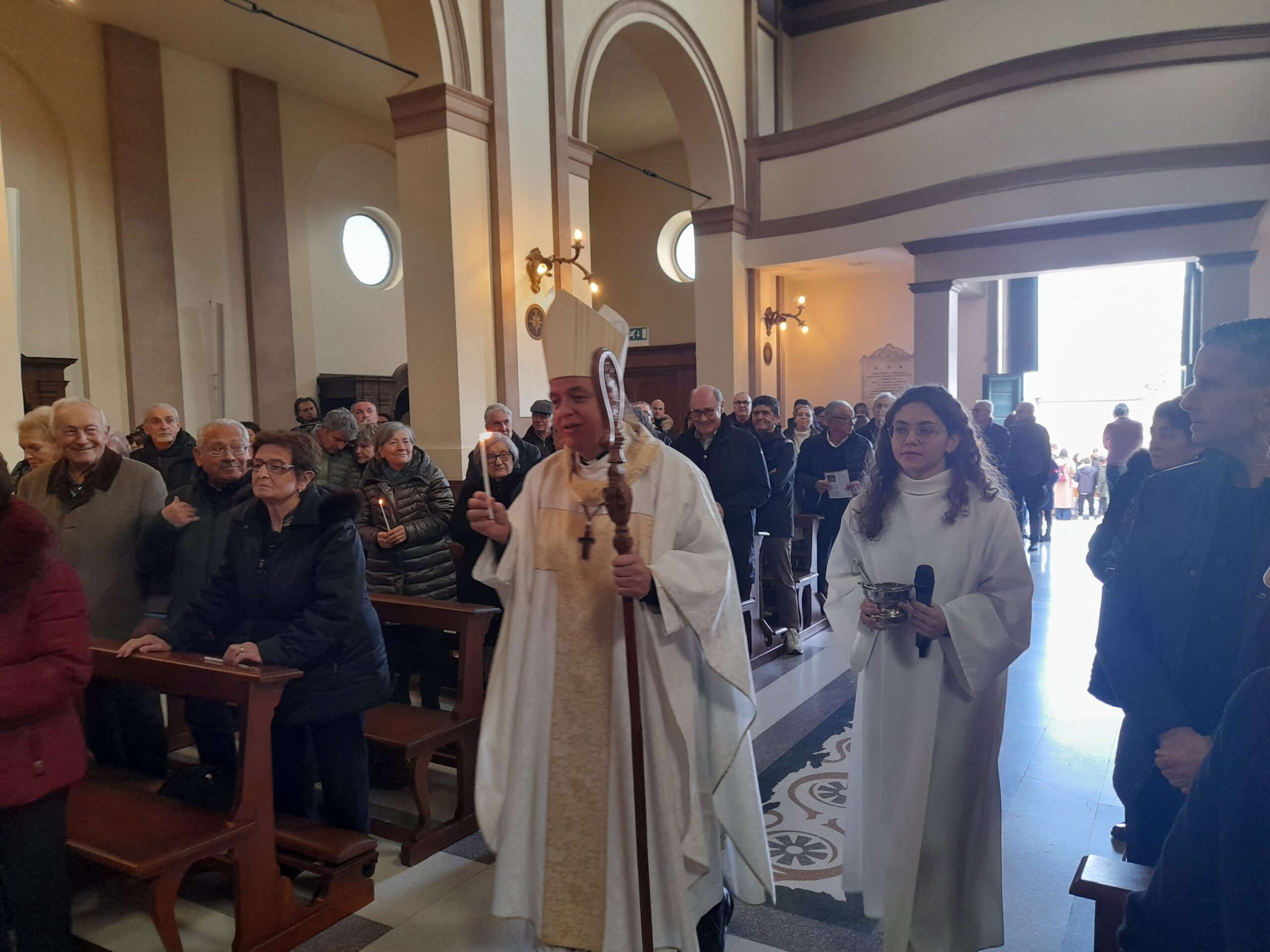 Per celebrare la festività della Candelora, la mattinata è proseguita con una breve processione della Luce, avvenuta dal cineteatro Margherita fino alla chiesa di San Basso, dove, alle ore 11:00, il vescovo Gianpiero Palmieri ha presieduto la Santa Messa, che è stata impreziosita dal canto del coro parrocchiale e concelebrata dal parroco don Roberto Traini, dal vicario parrocchiale don Benvenuto Napou, dai diaconi Luciano Rossi e Andrea D’Aprile, e da tutto il popolo di Dio riunito. Presenti molte donne in attesa e genitori con figli piccoli, in particolare coloro che hanno ricevuto il Battesimo nell’anno 2024. Tra le numerose famiglie presenti, c’era anche quella del primo cittadino di Cupra Marittima, Alessio Piersimoni.