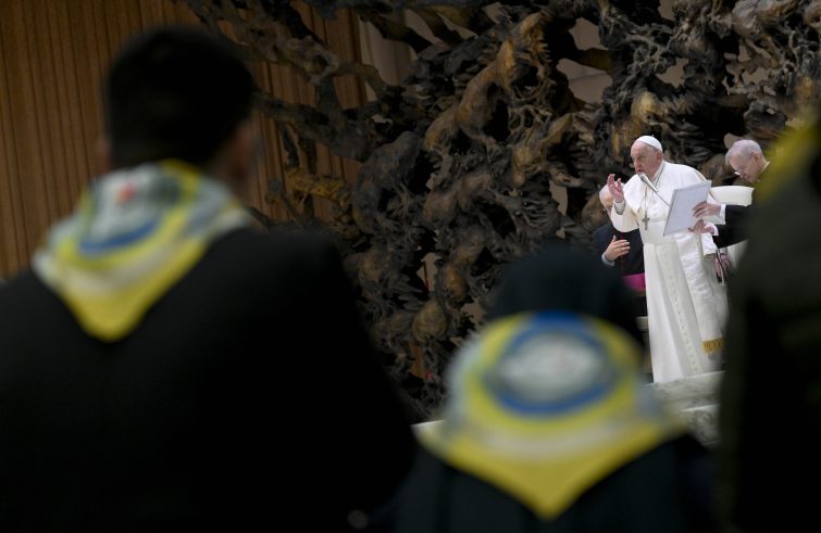 “Voglio chiedere scusa perché con questo forte raffreddore è difficile per me parlare. E per questo ho chiesto al mio fratello di leggere la catechesi. La leggerà meglio di me”. E’ iniziata con queste parole, pronunciate a braccio, l’udienza di ieri in Aula Paolo VI, in cui Papa Francesco ha lasciato la lettura quasi interamente a don Pierluigi Giroli, fatta eccezione per i saluti in spagnolo e in italiano, pronunciati da lui stesso. “Pensiamo ai Paesi che soffrono la guerra: la martoriata Ucraina, Israele, Sudan, tanti Paesi che stanno soffrendo lì. Ricordiamo gli sfollati della Palestina e preghiamo per loro”, il saluto a braccio ai fedeli di lingua italiana. Al centro della catechesi, la figura di Maria, nell’incontro con Elisabetta, e il Magnificat.
