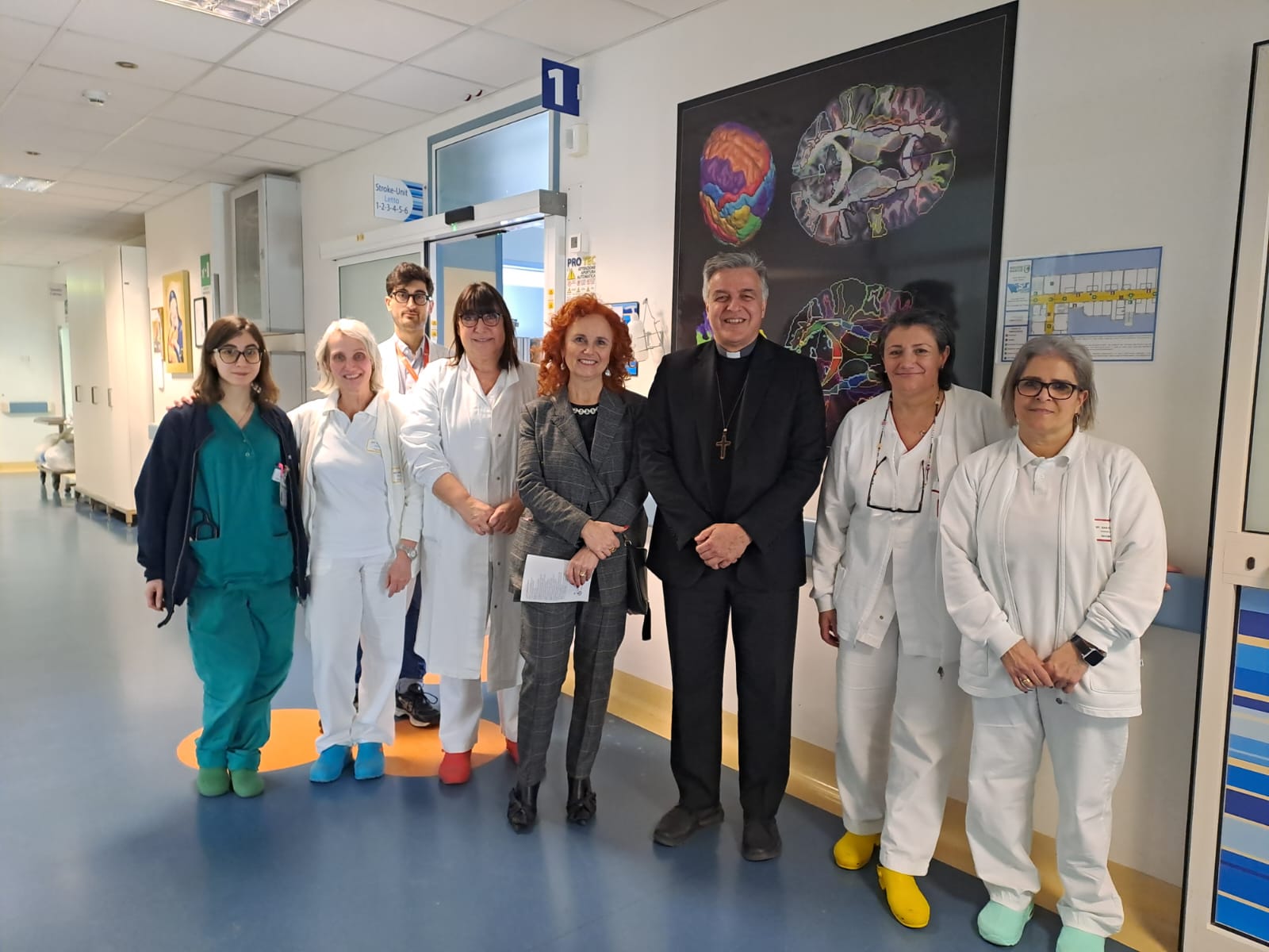 Il vescovo Palmieri ha inoltre fatto visita ai degenti delle unità operative di neurologia, medicina e medicina riabilitativa, portando un messaggio di conforto e speranza. Il presule ha inoltre incontrato gli operatori sanitari del laboratorio analisi, riconoscendo il loro impegno quotidiano nella cura e nell’assistenza ai pazienti.