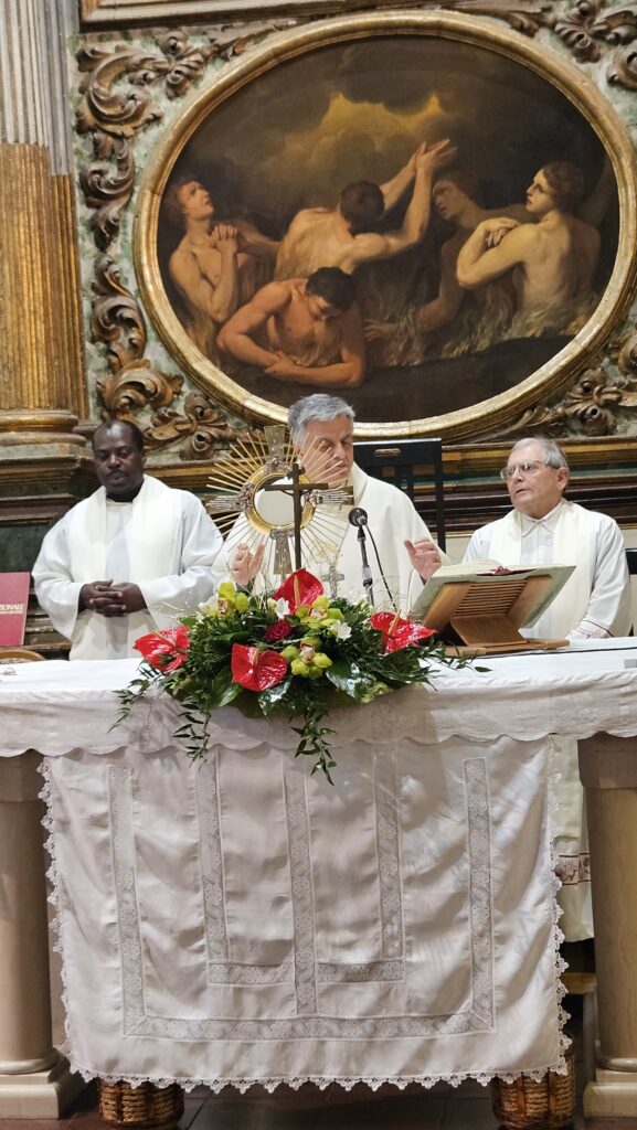 GROTTAMMARE – Domenica 16 febbraio, nella Chiesa di Sant’Agostino al Paese Alto di Grottammare, si è celebrato l’11° anniversario dell’istituzione dell’Adorazione Eucaristica Perpetua. La solenne Concelebrazione è stata presieduta dal Vescovo della Diocesi di San Benedetto del Tronto – Ripatransone – Montalto, mons. Gianpiero Palmieri, concelebrata dal Parroco dell’Unità Pastorale, mons. Federico Pompei, dal vicario parrocchiale don Joseph Bahane e dal diacono Luciano Caporossi.