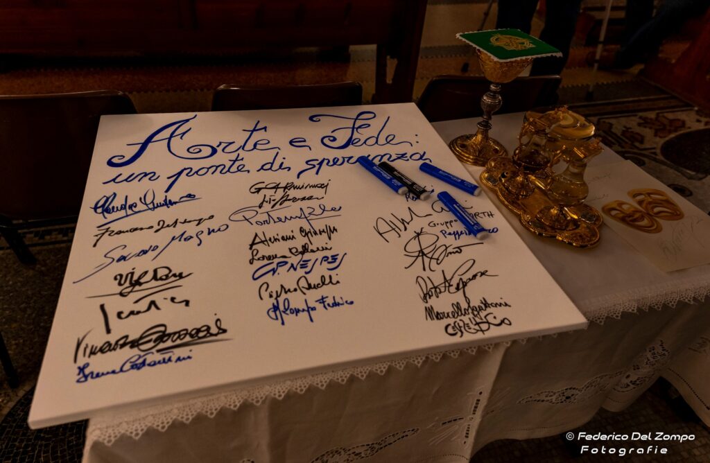 Il prelato ha colto l’occasione anche per ringraziare gli artisti presenti ed illustrare il tema dell’Anno Giubilare 2025: “Grazie a voi per essere qui a ringraziare, per essere qui a chiedere aiuto al Signore, per essere qui a stringersi gli uni gli altri. Vi chiedo di animare questo territorio attraverso il vostro lavoro, le opere d’arte, che escono dalle vostre mani, dalle vostre intuizioni, dalla vostra sensibilità.