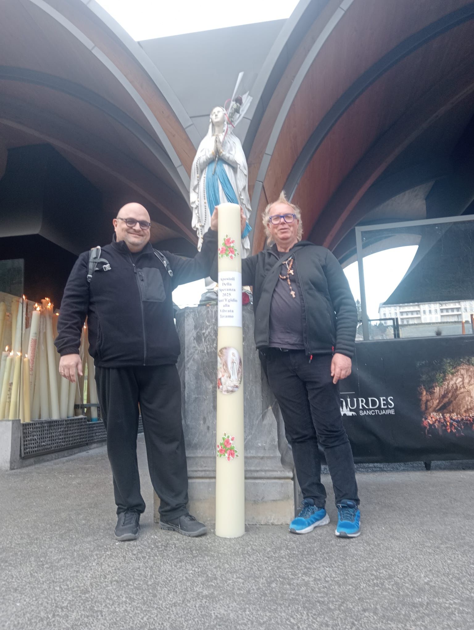 Il programma dei quattro giorni trascorsi in Francia è stato piuttosto intenso. Prosegue don Iacono: “Abbiamo vissuto momenti molto belli di preghiera sia personale che comunitaria. Il primo giorno, Sabato, al mattino abbiamo celebrato la messa nella cappella del Rosario, mentre alla sera abbiamo recitato il rosario nella grotta della veggente, in diretta su TV2000. Abbiamo anche percorso l’itinerario denominato “Passi di Bernardetta”, che ci ha portato attraverso i principali luoghi in cui la Vergine di Lourdes ha vissuto: il mulino natale, il Moulin de Boly; il Cachot dove visse con la sua famiglia e dove viveva ancora al momento delle apparizioni, nel 1858; poi l’Ospizio dove frequentò la scuola presso le Suore di Nevers; il luogo della sua prima comunione e la chiesa parrocchiale, dove ancora si può vedere il fonte battesimale utilizzato per il suo battesimo e l’antico presbiterio dove Bernadette riferì al parroco i messaggi che cambiarono il destino di Lourdes. Il secondo giorno, Domenica, abbiamo celebrato la messa ed abbiamo anche vissuto un momento significativo con l’unzione dei malati. Lunedì abbiamo fatto la Via Crucis e il rito dell’acqua. Purtroppo non è stato possibile accedere alle piscine, in quanto sono ancora chiuse per motivi di sicurezza legati alla pandemia. Nello stesso giorno abbiamo offerto alla Madonna un cero molto significativo per il nostro gruppo: sopra di esso, infatti, abbiamo inciso il nostro nome, “Apostoli della Speranza”, per chiedere alla Madonna di Lourdes una speciale protezione per il nostro gruppo che da quattro anni ha iniziato un cammino in preparazione al Giubileo. Inoltre le abbiamo chiesto anche di proteggere le comunità della nostra Vicaria e di ascoltare le preghiere per i nostri ammalati, in particolare Papa Francesco, che proprio in questi giorni è ricoverato all’Ospedale Gemelli per una polmonite bilaterale. Martedì, infine, alle 8:00 del mattino, prima di ripartire per l’Italia, abbiamo celebrato la messa nella grotta delle apparizioni nella memoria liturgica della Veggente Santa Bernadette”.