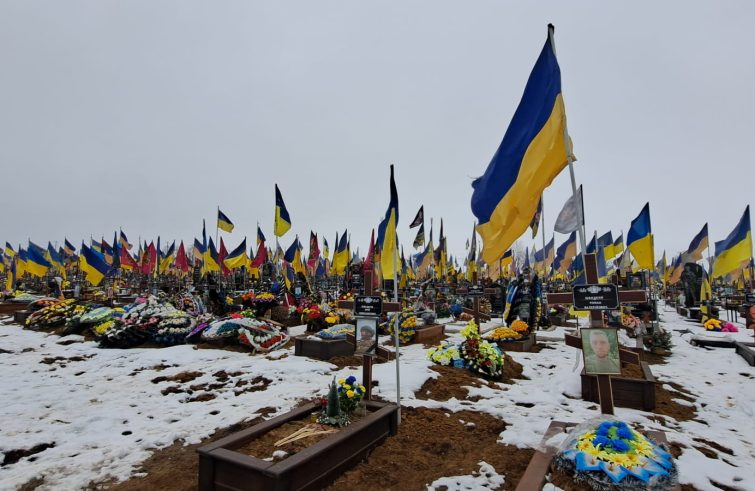 (da Kharkiv) Una distesa di bandiere ucraine, blu e gialle. Sono così tante che si disperdono fino all’orizzonte. Ad ogni bandiera corrisponde una tomba ed un caduto di guerra. Sono i giovani eroi della “martoriata Ucraina”. Siamo in uno dei cimiteri di Kharkiv. Nelle foto sono ritratti i volti di ragazzi e ragazze, tutti in divisa, spesso appena ventenni. Hanno dato la vita per questo Paese. E sono una moltitudine. L’Ucraina sta pagando un prezzo altissimo per questa guerra che dura dal 2014. Un prezzo su cui però è calato un velo di mistero. Non si sa esattamente quanti siano i soldati ucraini morti sul fronte. Sul loro numero, il governo ha imposto un segreto militare. Siamo in uno dei cimiteri di Kharkiv.Da qui, il fronte dista solo 30 chilometri. Ma il silenzio sovrasta i rumori della guerra. Si sente solo il suono delle bandiere che sbattono al vento gelido dell’inverno.