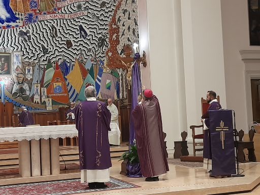 È con queste domande provocatorie che mons. Gianpiero Palmieri, vescovo delle due Diocesi del Piceno, ha iniziato l’omelia della celebrazione eucaristica del Mercoledì delle Ceneri, da lui presieduta ieri, 5 Marzo 2025, alle ore 21:00, presso la cattedrale Santa Maria della Marina in San Benedetto del Tronto. La Messa è stata concelebrata dal vicario generale della Diocesi di San Benedetto del Tronto – Ripatransone – Montalto, don Patrizio Spina, dai due parroci emeriti della cattedrale, don Luciano Paci e don Romualdo Scarponi, dai diaconi Walter Gandolfi, Emanuele Imbrescia e .Pietro Mazzocchi, dai ministranti e da tutto il popolo di Dio riunito.