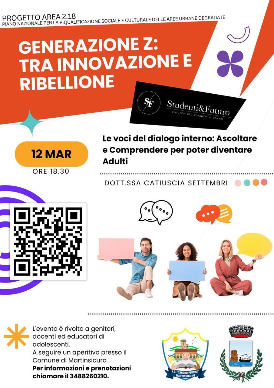 L’incontro è aperto a genitori, docenti ed educatori interessati ad approfondire le dinamiche della Generazione Z. Al termine, seguirà un momento conviviale con un aperitivo presso il Comune di Martinsicuro.