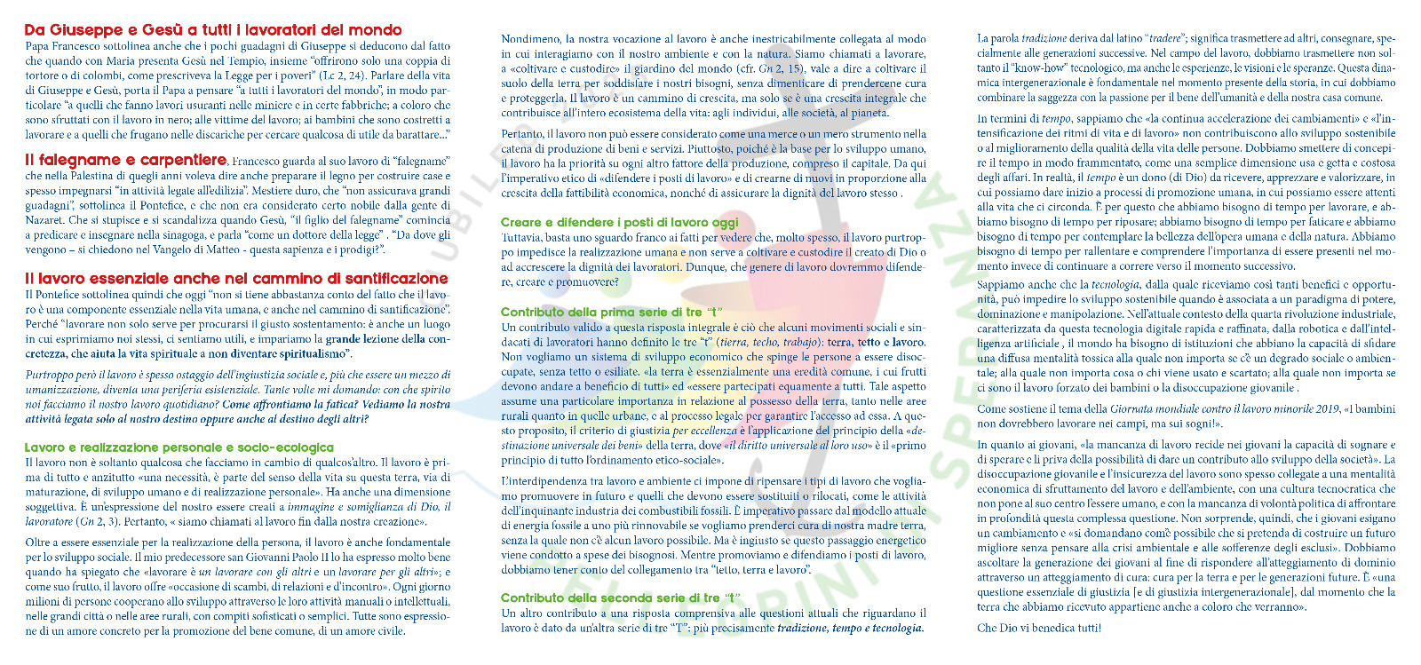 È con queste parole che Franco Veccia e don Giuseppe Capecci, direttori degli Uffici di Pastorale Sociale, del Lavoro e della Cura del Creato delle due Diocesi del Piceno, presentano la lettera che hanno rivolto a tutti i lavoratori e le lavoratrici in occasione della Festa del Lavoro che si terrà il prossimo 19 Marzo 2025.