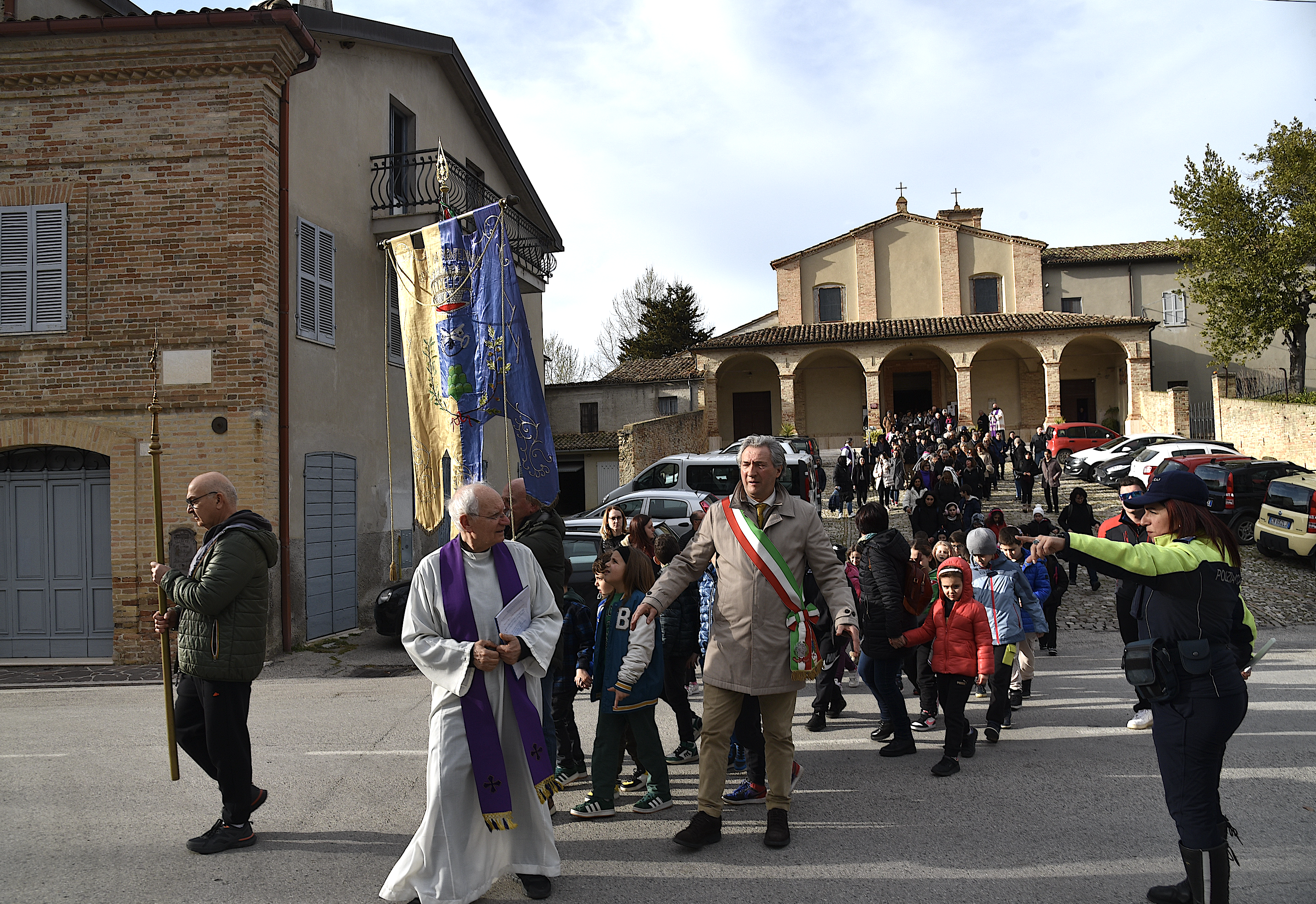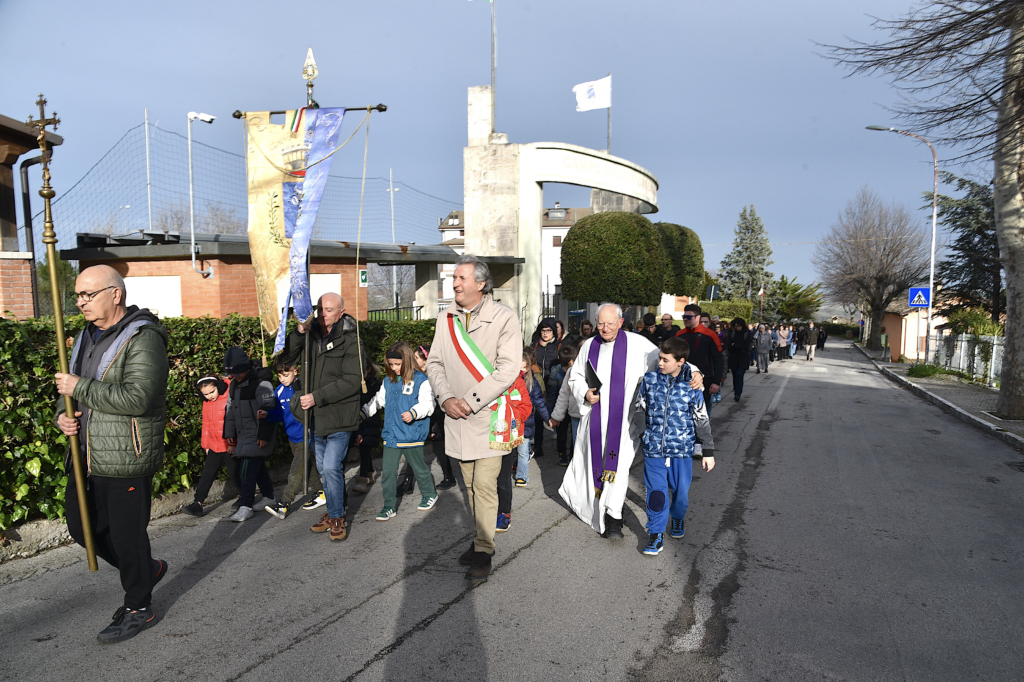 Successivamente, i numerosi partecipanti hanno intrapreso un cammino di preghiera a piedi fino alla Chiesa di San Lorenzo Martire, patrono della comunità parrocchiale di Montedinove. Ad aprire il corteo, con emozione, sono stati i bambini, testimoni di una fede giovane e viva. Tra i presenti, anche il Sindaco di Montedinove, Antonio Del Duca.