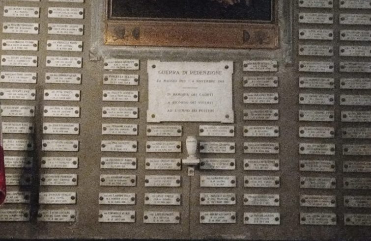 Il Lapidarium ricorda attraverso 530 lapidine altrettanti caduti in guerra, per la maggior parte periti nel primo conflitto mondiale. Queste lapidi vennero pagate dai congiunti dei Caduti con offerte volontarie. Fra queste anche quelle di diversi israeliti ai cui famigliari venne chiesto il nulla osta per l’apposizione delle stesse in una chiesa cattolica.