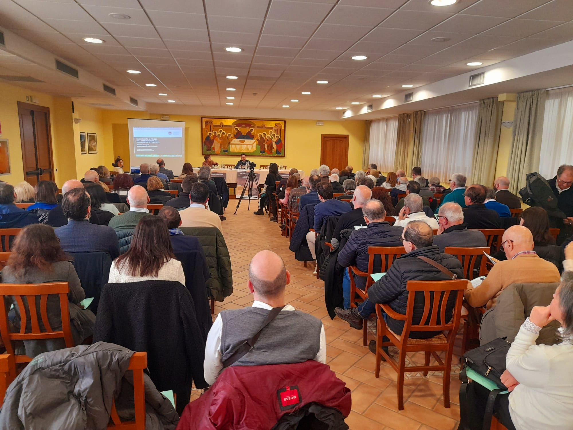 A seguire, il prof. Domenico Rossignoli dell’Università Cattolica del Sacro Cuore, ha illustrato una ricerca evolutiva dal titolo “Dare credito ai poveri: dalla predicazione alla generazione di comunità“. “Nel giudicare il grado di civiltà di una società – ha detto il ricercatore – non conta solo il profitto, ma anche il livello di inclusività delle istituzioni. In tal senso potremmo considerare i frati i precursori della finanza civile moderna. Spinti infatti da una forte pulsione morale e religiosa, iniziano a peregrinare per l’Italia – potremmo azzardare a dire che fossero gli influencer dell’epoca – per promuovere una visione del mondo che era evidentemente quella cristiana. La loro predicazione nel 400 fa aumentare anche il numero dei Monti Frumentari e di Pietà. Esiste davvero un rapporto diretto tra l’origine dei Monti solidali e la predicazione dei frati? Storici ed economisti hanno bisogno di dati certi e noi per ora abbiamo rilevato che, quando un’area viene colpita da un terremoto, nell’arco di 7/8 anni, se c’è un predicatore di passaggio, viene istituito un monte di pietà o un monte frumentario. Ma non con le risorse dei frati, che erano solo di passaggio e, avendo fatto voto di povertà, non potevano quindi possedere beni, bensì con le risorse della comunità. Ecco perché con i Monti si generava comunità, perché avevano una dimensione locale: il credito raccolto era su base locale, le donazioni raccolte erano su base locale, ma anche le persone a cui si faceva credito erano del posto. Il Monte Frumentario o il Monte di Pietà, dunque, si rivolge alla comunità, nasce dalla comunità e genera comunità“.