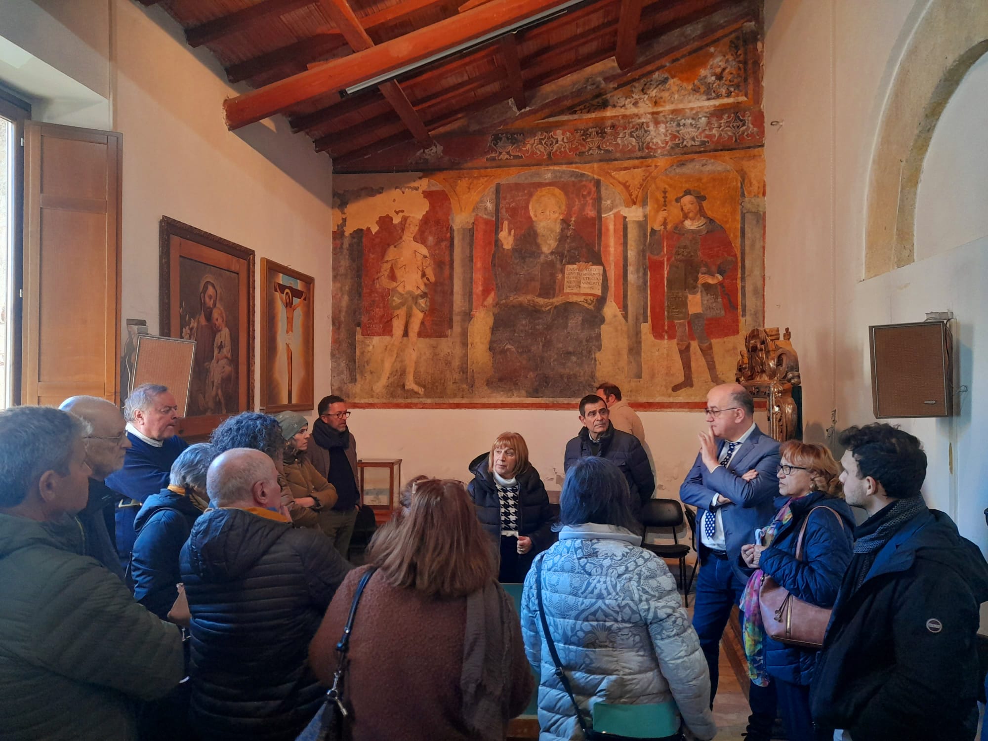 Il pomeriggio si è aperto con la visita al Monte Frumentario di Paggese, uno dei pochissimi che ha ancora l’antico palazzo del Cinquecento. Nell’occasione gli ospiti hanno potuto visitare anche le le caratteristiche rue del borgo e la vicina chiesa romanica di San Lorenzo.