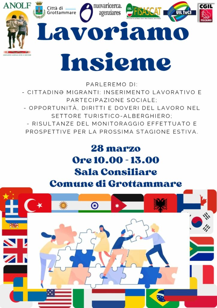 GROTTAMMARE – L’ANOLF (Associazione Nazionale Oltre Le Frontiere) Cisl Marche torna a parlare di migranti e di lavoro in ambito turistico-alberghiero. Venerdì prossimo, 28 marzo, nella Sala consiliare si discuterà di inserimento lavorativo e partecipazione sociale dei migranti, di opportunità, diritti e doveri. Nell’occasione, verranno illustrate anche le risultanze di una ricerca che ha messo a fuoco questi aspetti e le prospettive per la prossima stagione estiva. Interverranno: Luana Agostini e Caterina Spalazzi per CGIL, Roberto Celi (CISL), Franco Ravaglia (UIL), Luca Orsini (Res). Inizio ore 10.