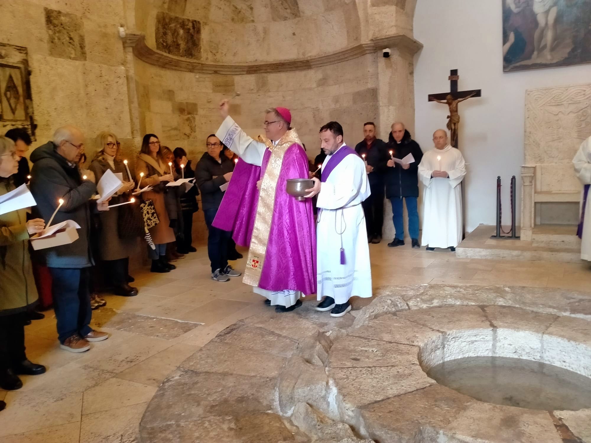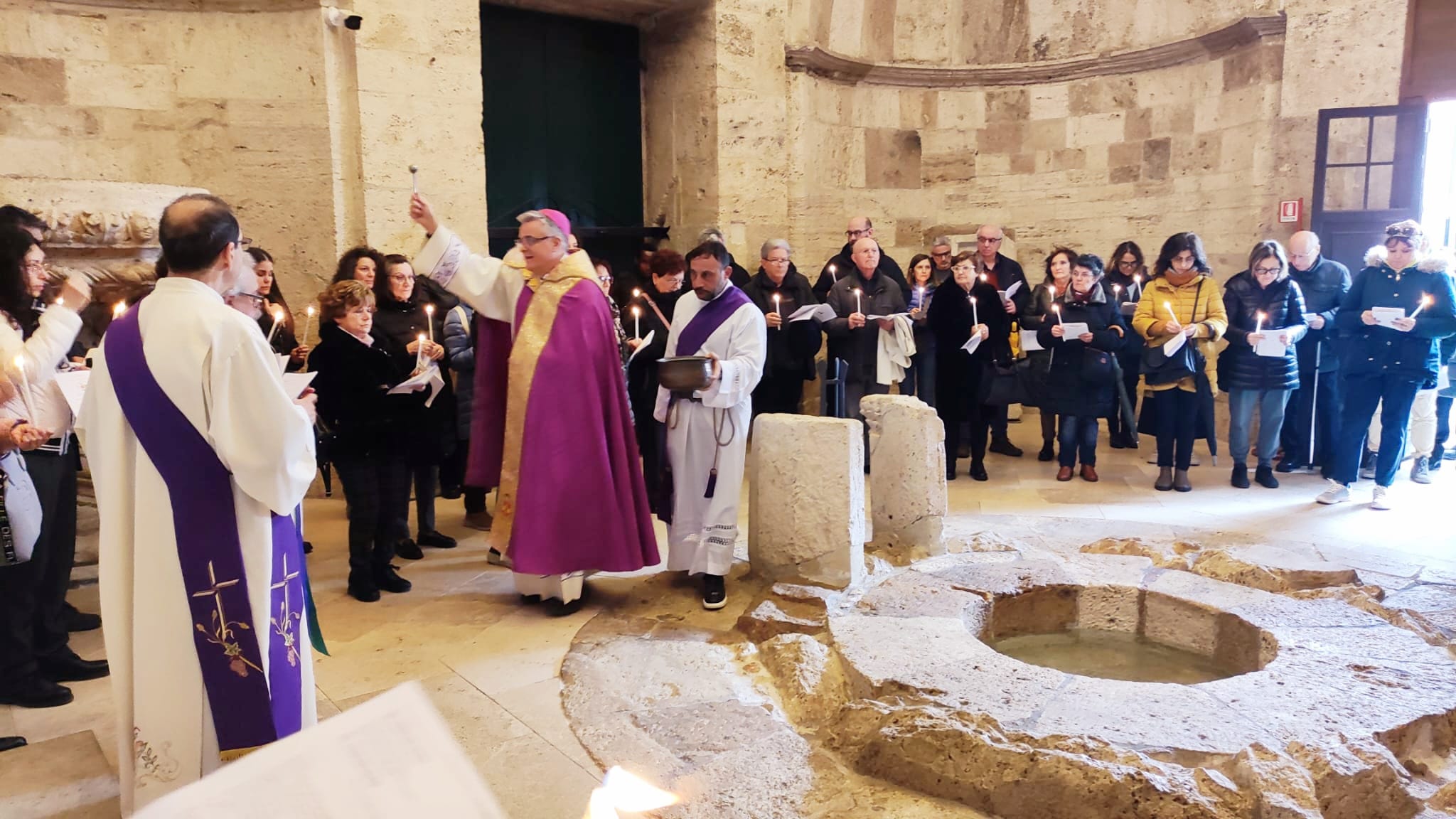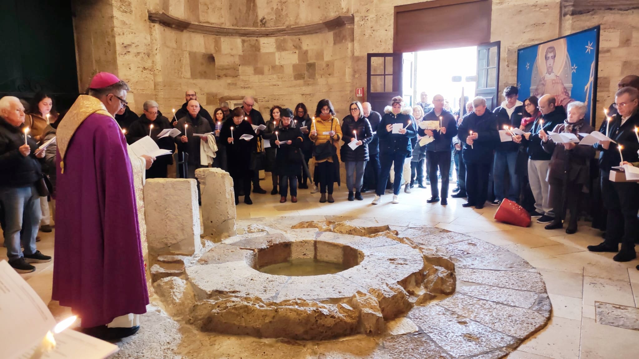 Ha detto mons. Palmieri: “Vivremo questo pellegrinaggio giubilare in quattro tappe che sono in successione cronologica. La prima ci riporta all’inizio della nostra vita, a quando abbiamo ricevuto il dono del Battesimo e della fede. La nostra dignità di figli di Dio, infatti, si è manifestata il giorno in cui siamo stati immersi nella morte e resurrezione di Gesù: morire con Gesù per risorgere con Lui. È un segno sacramentale che riguarda tutta la nostra vita: tutta la nostra vita, infatti, è un morire per rinascere con Cristo. Il dono della fede, invece, sarà simboleggiato dalla candela che accenderemo dal cero pasquale, simbolo di Gesù Risorto”.