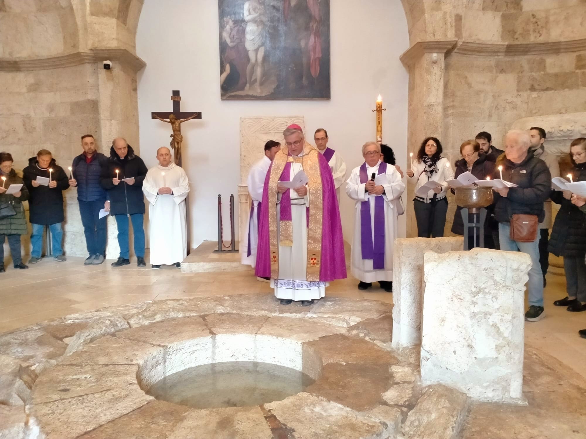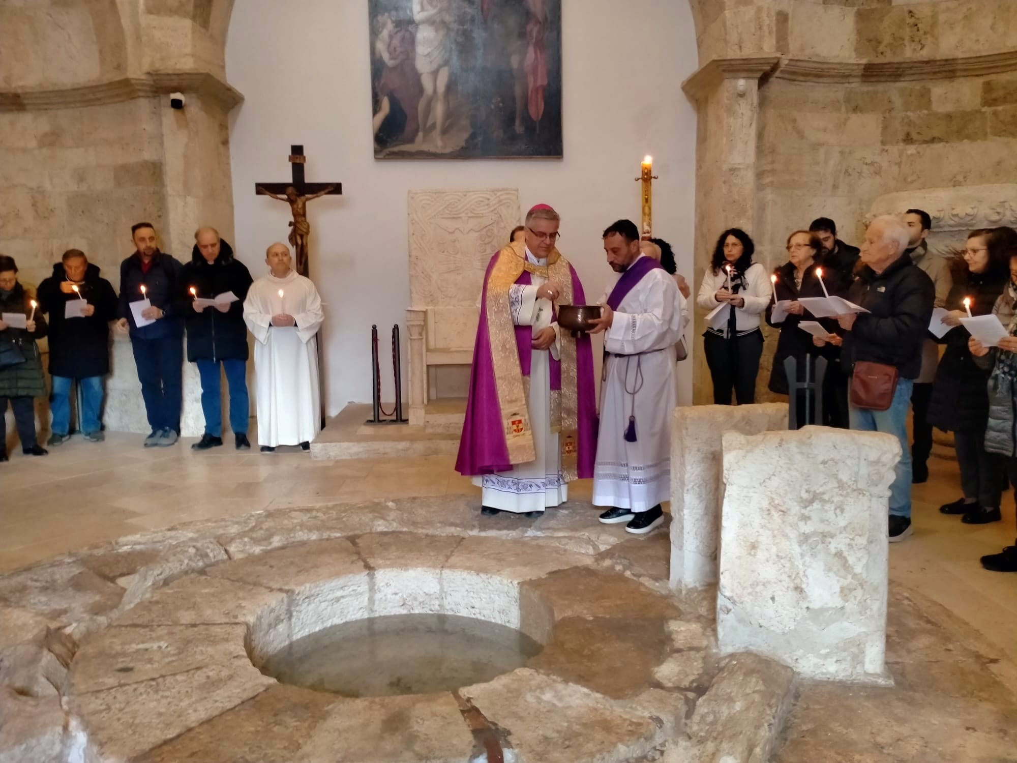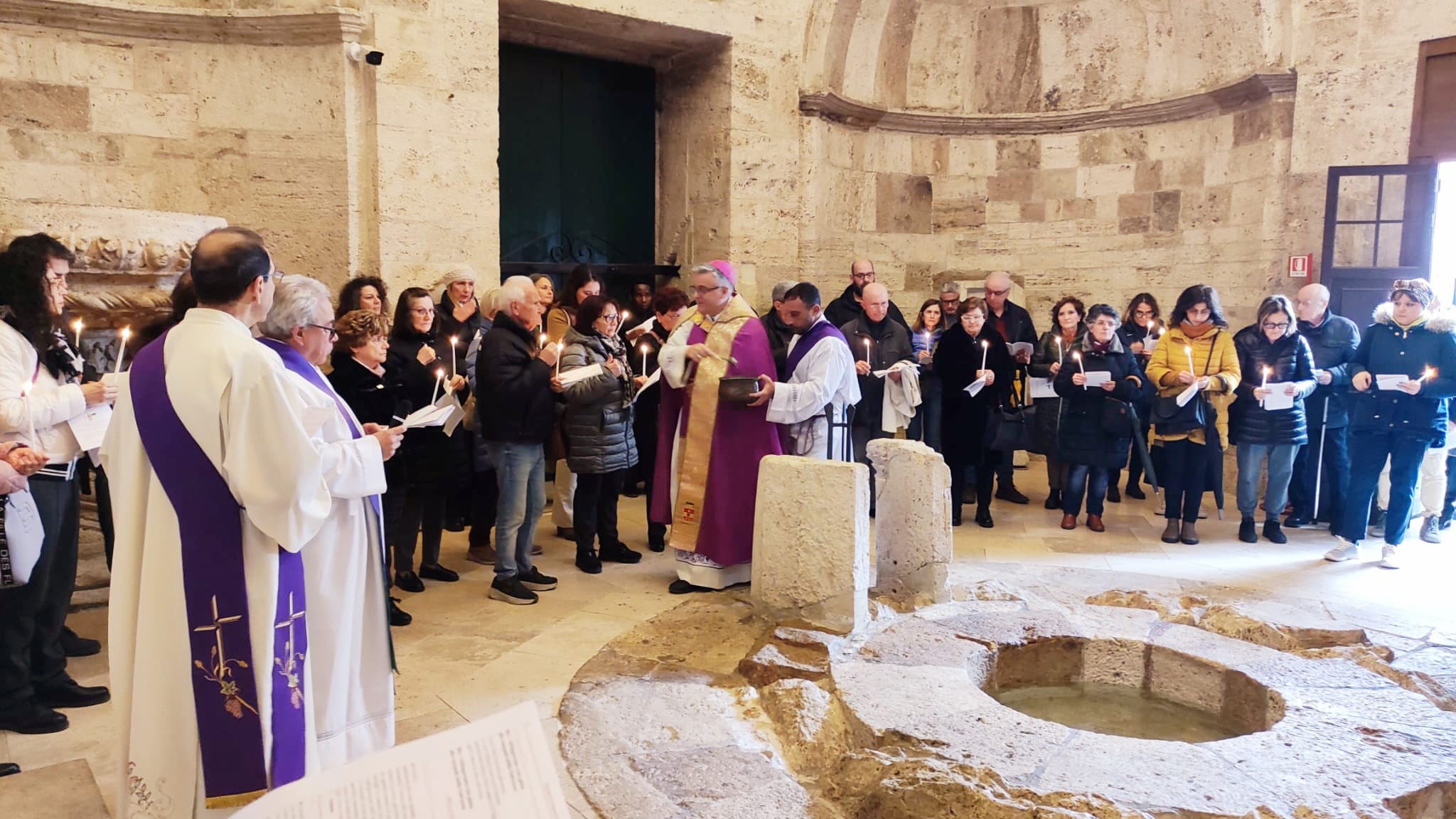 Ha detto mons. Palmieri: “Vivremo questo pellegrinaggio giubilare in quattro tappe che sono in successione cronologica. La prima ci riporta all’inizio della nostra vita, a quando abbiamo ricevuto il dono del Battesimo e della fede. La nostra dignità di figli di Dio, infatti, si è manifestata il giorno in cui siamo stati immersi nella morte e resurrezione di Gesù: morire con Gesù per risorgere con Lui. È un segno sacramentale che riguarda tutta la nostra vita: tutta la nostra vita, infatti, è un morire per rinascere con Cristo. Il dono della fede, invece, sarà simboleggiato dalla candela che accenderemo dal cero pasquale, simbolo di Gesù Risorto”.