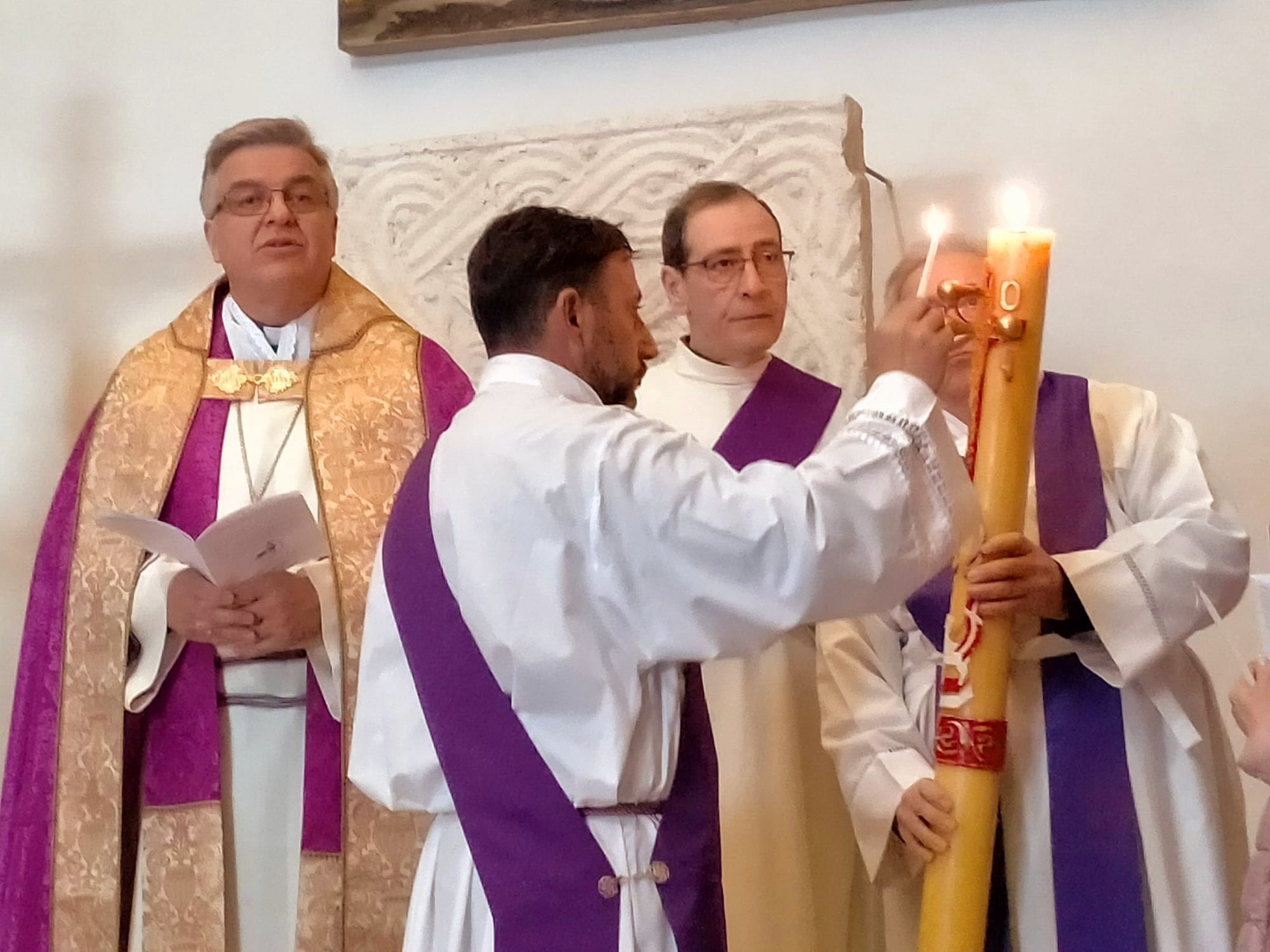 I fedeli, quindi, guidati dal vescovo Gianpiero, hanno fatto memoria del Battesimo, prima accendendo le candele dal cero pasquale, poi rinnovando le promesse battesimali e facendo la professione di fede ed infine con l’aspersione della acqua benedetta.